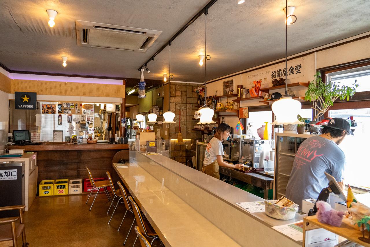 聞くと元々こちらは大衆食堂だったそうで、その雰囲気を残したままリノベーション。じゃあ、その長いカウンターも…と思ったら、こちらは残された食堂の雰囲気に合わせて作ったとのこと。古いものの残し方、そして新しいものの馴染ませ方が絶妙です…!