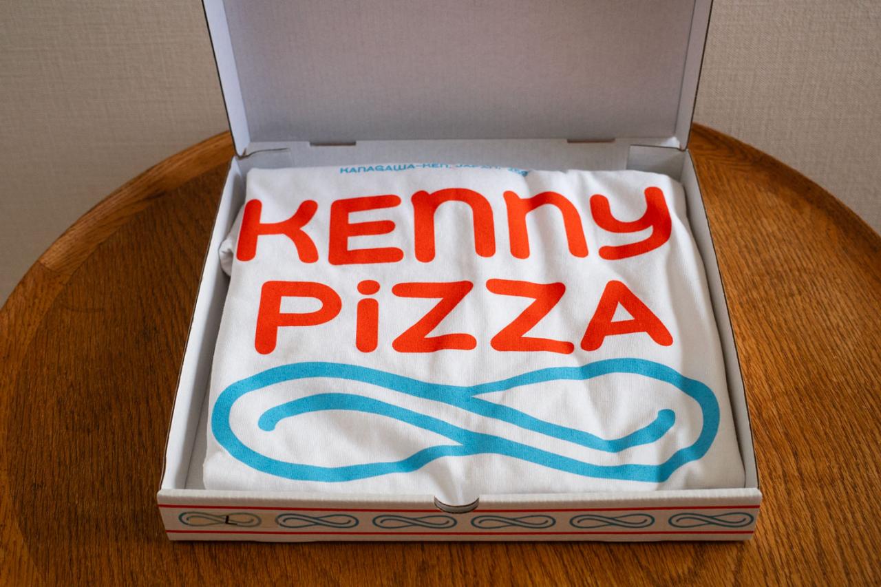 Tシャツを購入すると、パッケージはなんとピザボックス!袋に入れて手に持てば完全にピザをテイクアウトした人。楽しくなりますね。