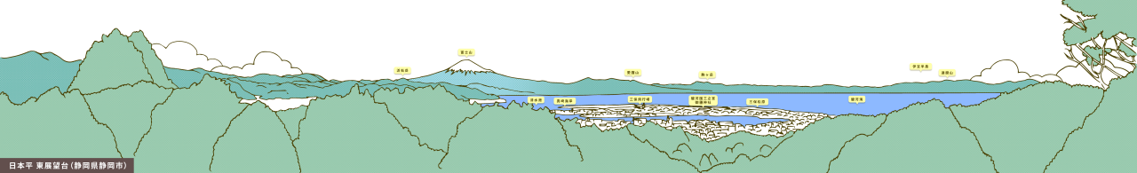 駿河区と清水区の境にある丘陵地の日本平は、新日本観光地百選にも選ばれている有数の景勝地。その東展望台からは富士山や三保松原、伊豆半島などを望むことができるほか、日が沈んだあとには清水港や工場の夜景も楽しめます。