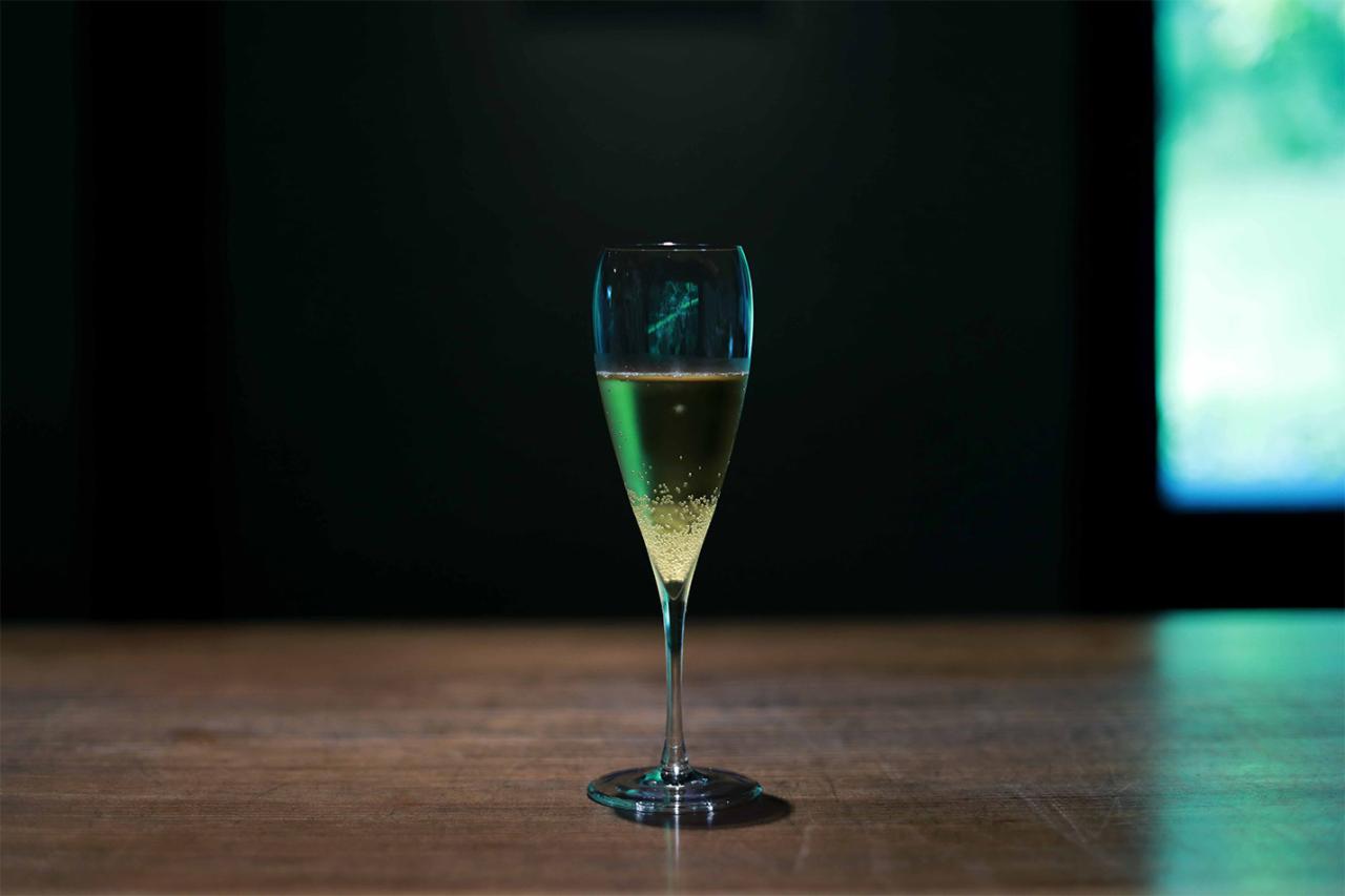 自生している茶葉を手摘みしたお茶を使ったスパークリングティーが、この日のウェルカムドリンク。芳醇な香りに初っ端から感激する。