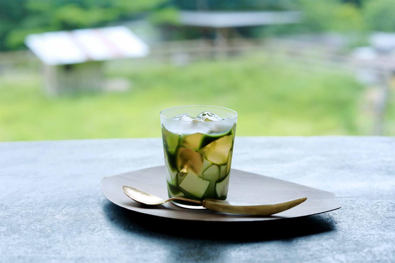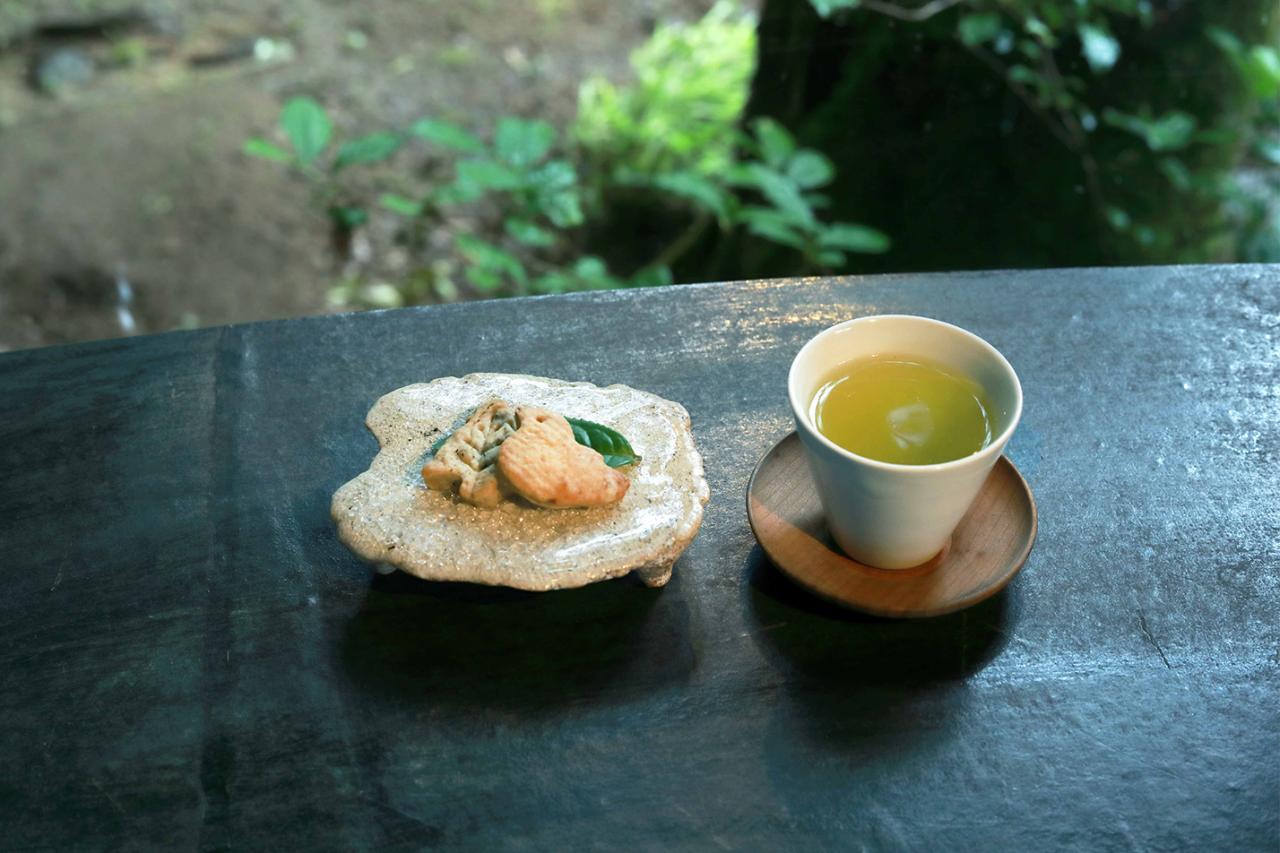 水菓子は自生のニッキと豆乳のゼリーに茶葉ソースをかけたもの。