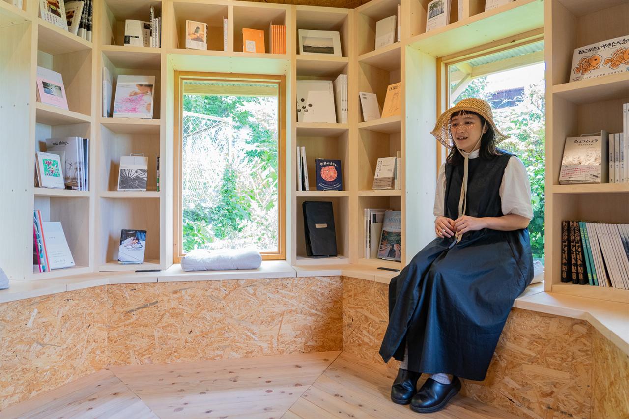 〈本と美容室〉は、神奈川県三浦市の三崎口にある出版社〈アタシ社〉が運営している。同社が三崎口で営む〈花暮美容室〉も1階が蔵書室、2階が美容室という営業形態。真鶴に姉妹店の出店を計画していた時期に、まち歩きツアーに参加した高山さんと出会った。高山さんは現在、神奈川県内の別のまちに暮らしながら、真鶴に通って〈本と美容室〉を切り盛りしている。