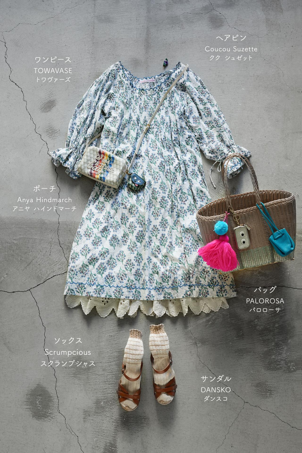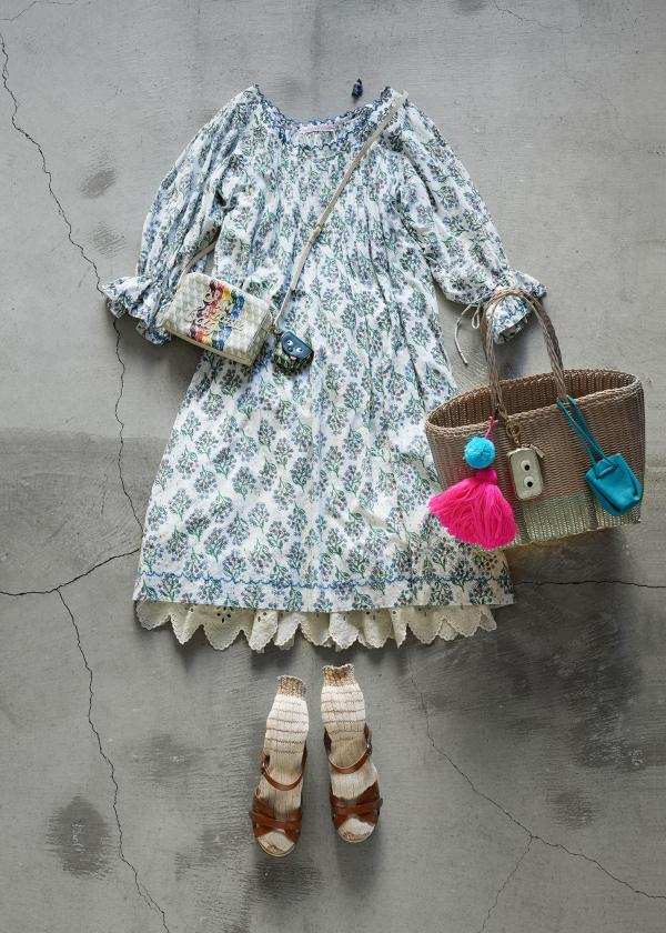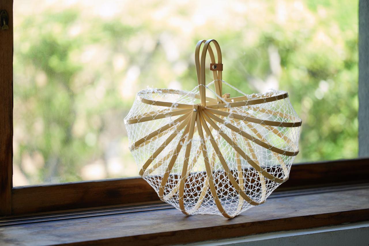 京都だとたくさん歩いて美味しいものを頂くのが大前提なので、ストレスフリーなサイズ感かつ着ていて気持ちが楽しくなるアイテムをコーディネートします。あと、福田里香さんと森香菜さんプロデュースの折りたためる竹籠バッグantego(アンテゴ)をいつも旅に持っていきます。その日の気分や服装にあわせて旅のバッグも変えられたらいいなと思って。