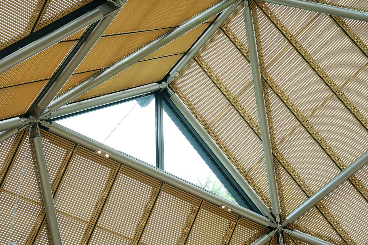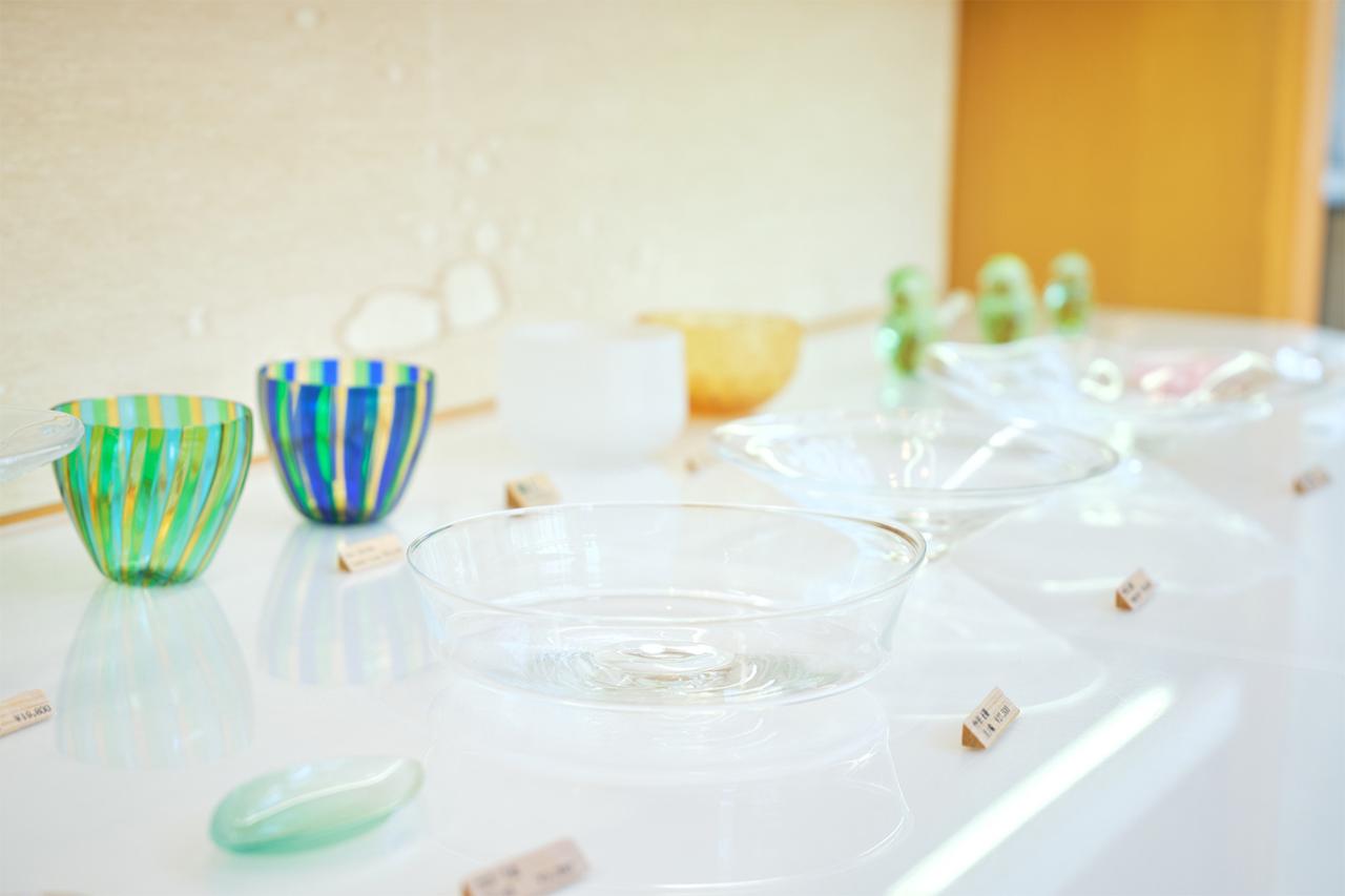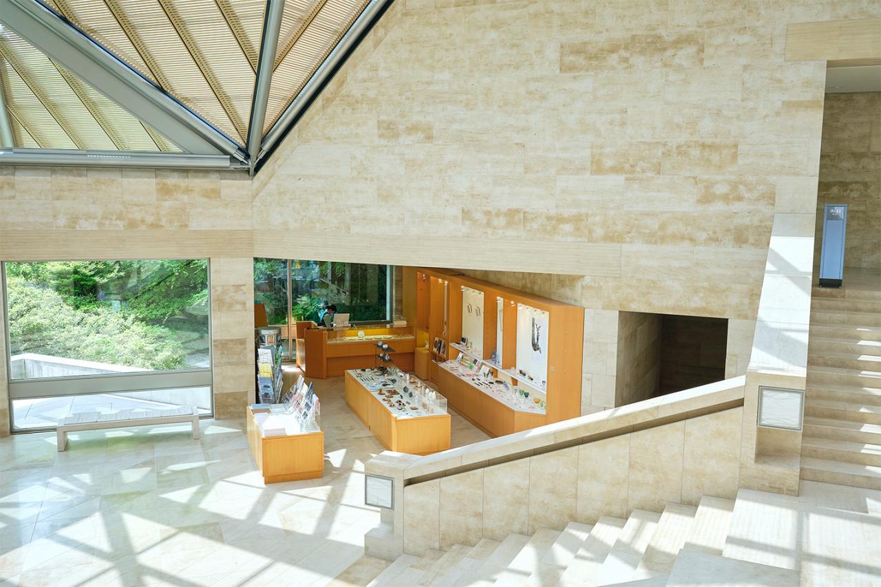 三角形を組み合わせたデザインの屋根や大きな窓に圧倒されていると、お目当てのミュージアムショップが目に入った。ガラスや陶器のアート、雑貨など、この土地の魅力を際立たせてくれるような品々がセレクトされている。太陽の光に照らされ、ゆったりとした空間の中で、ショッピングの時間を楽しもう。