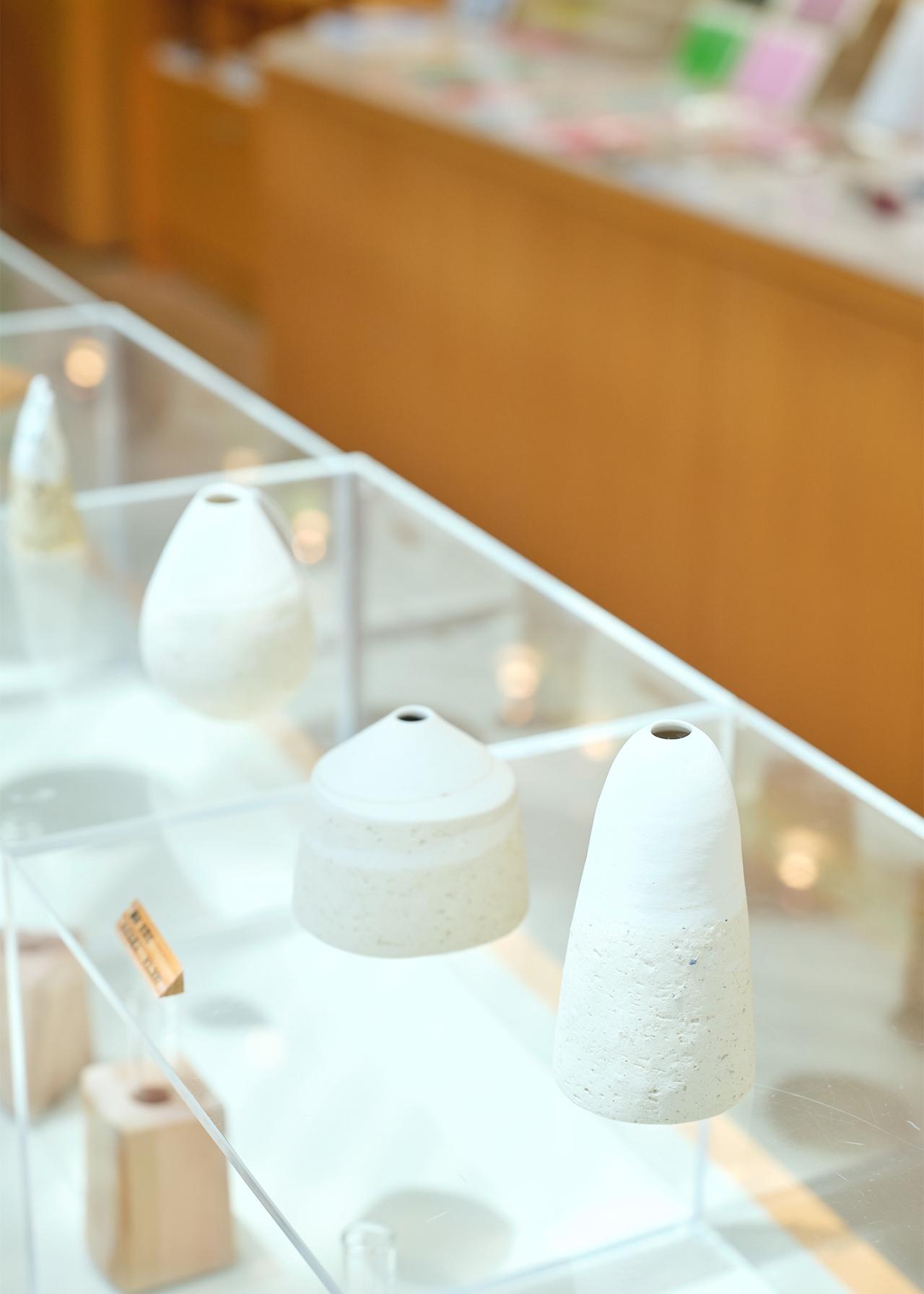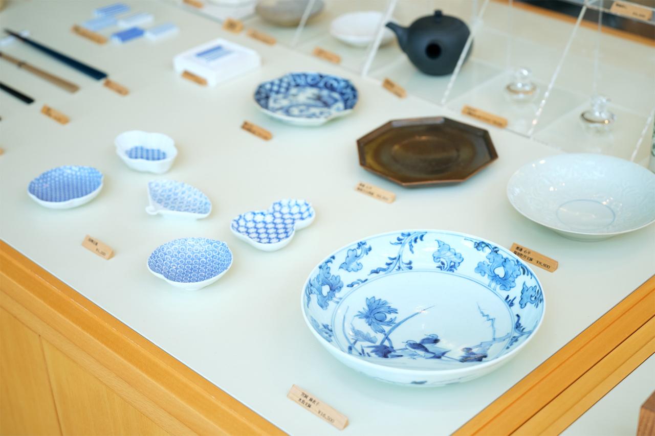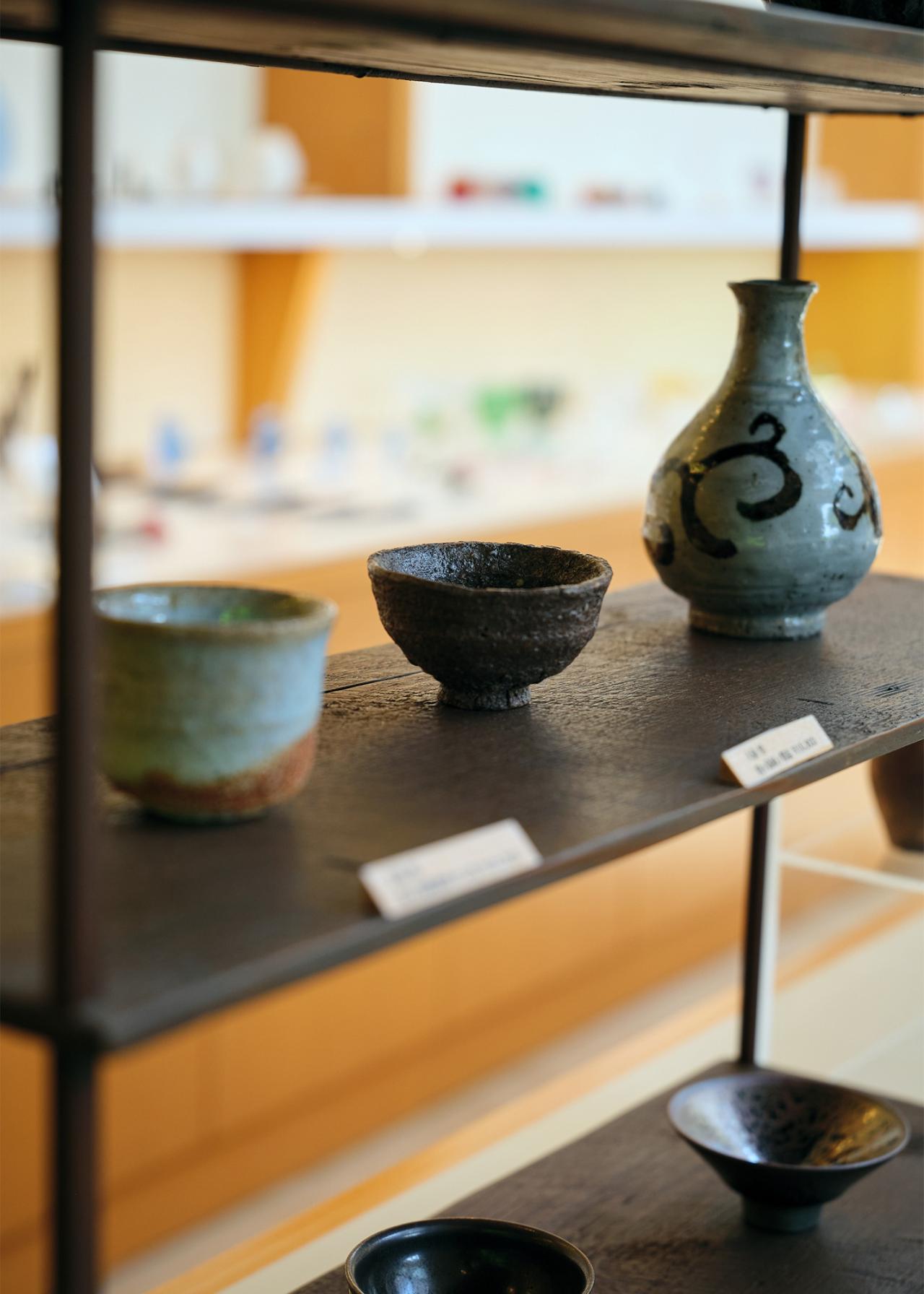 実は、美術館の中にはミュージアムショップが3つあり(南館ショップは営業休止中)、レストランのあるレセプション棟では、日野椀、陶器などの生活雑貨や食に関する書籍が販売されている。この美術館棟のショップの方にも器は取り揃えられ、春・夏・秋の展覧会毎に合わせたラインナップに替えているそう