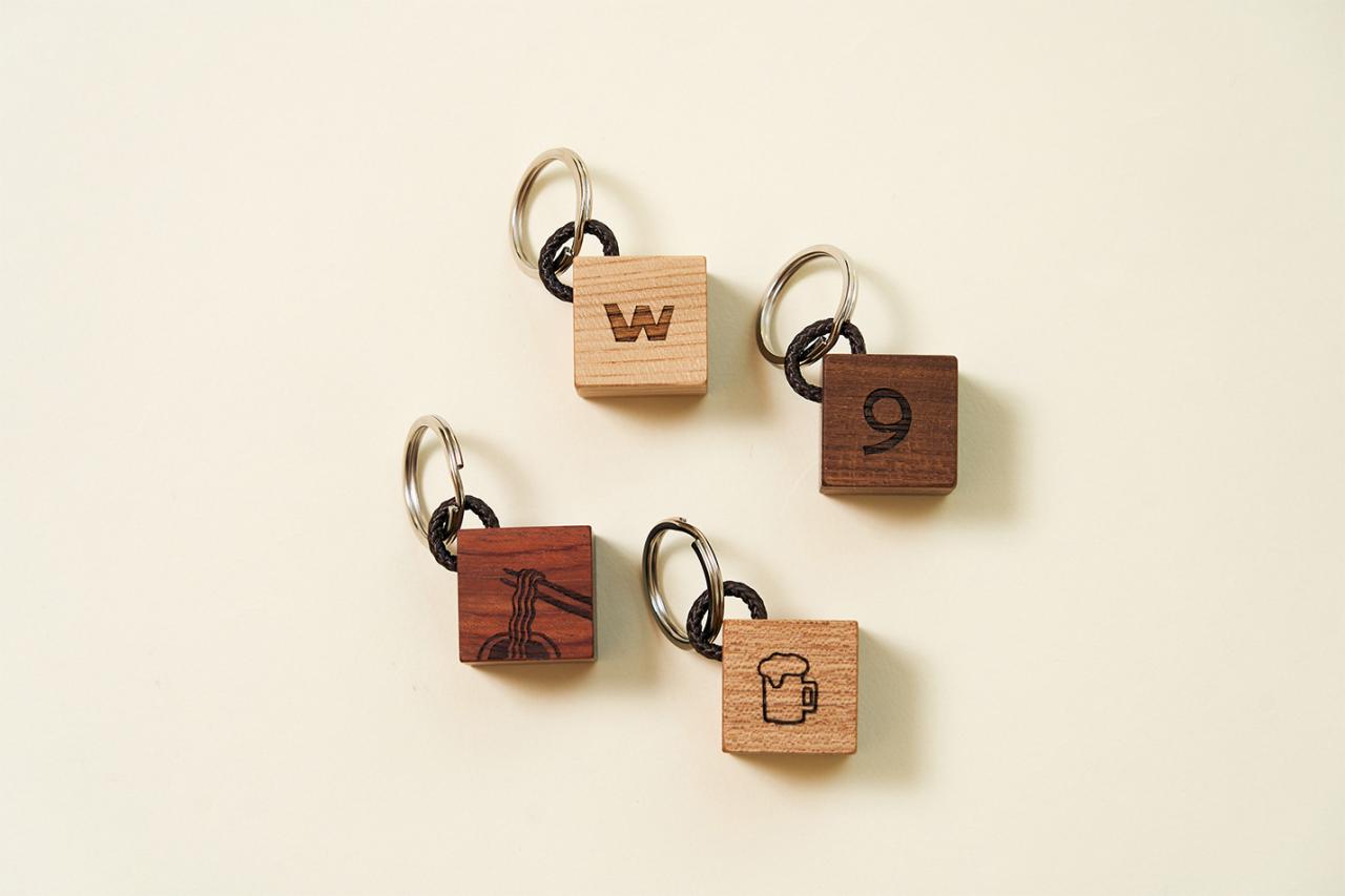 コロコロとかわいい木のキーホルダーは、徳島県で木のものづくりを行う「テーブル工房kiki」によるもので、使われる木の種類もさまざま。イニシャルやイラストが描かれていて、お土産にもぴったりだ。