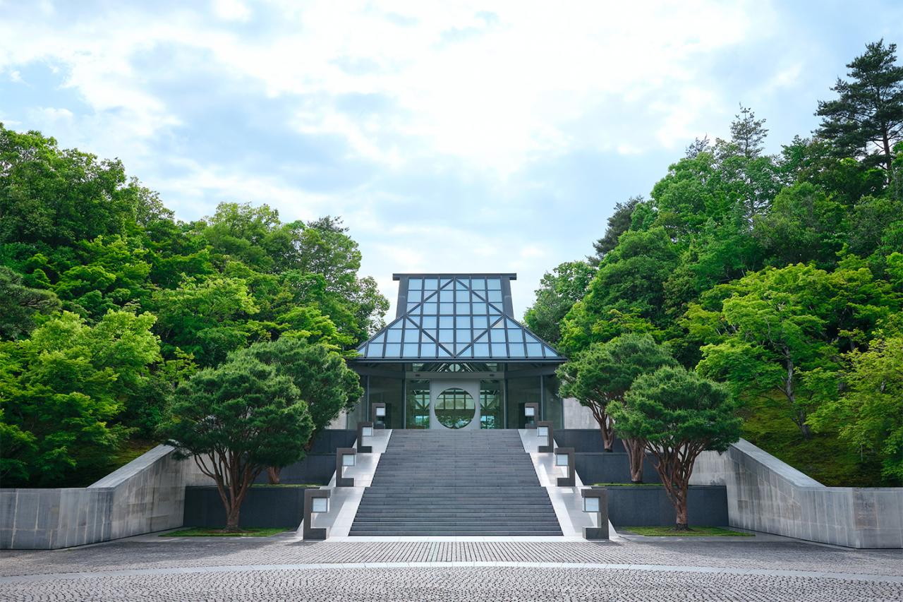 今回の旅の目的地は、滋賀県信楽にある〈MIHO MUSEUM〉。山中の道をぐんぐんと進んでいくと、イオ・ミン・ペイによる建築が出迎えてくれる。ルーヴル美術館の設計で知られ、幾何学の魔術師とも呼ばれた彼の作品の素晴らしさは、敷地内にいくつかある建物のうち、特に美術館棟で実感できる。この建物は、創業者の美術コレクションに合わせてオートクチュールのように設計されたものだという。