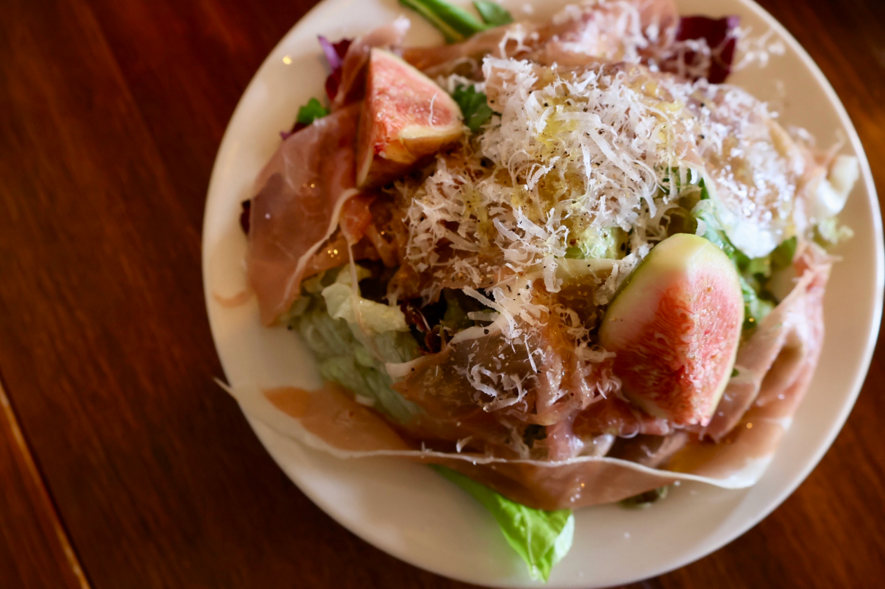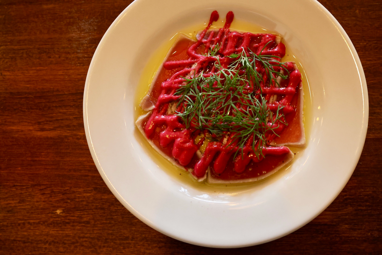 この日の前菜は、生ハムサラダ、マグロのカルパッチョ、ムール貝の白ワイン蒸しからチョイス。生ハムサラダは大きめにカットされたいちじくと生ハムの相性が抜群。いちじく好きにはたまりません!マグロのカルパッチョは、ビーツの鮮やかなピンク色のソースが目を惹く一品です。