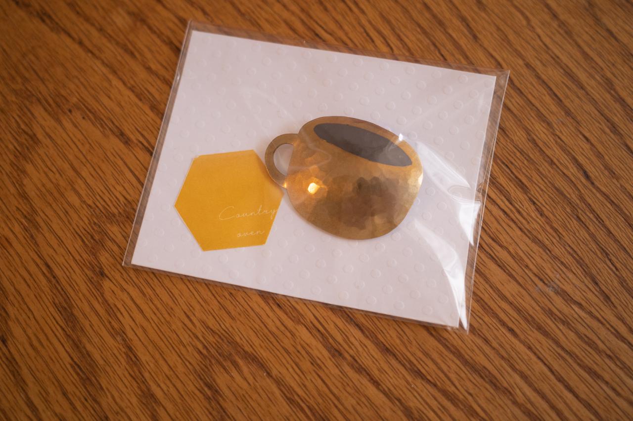 花沢の里にある蔵&庭カフェのカントリーオーブンさんでは、コーヒーカップのブローチを。静岡県在住の金工作家である玉置久実さんの作品だそうで、フォルムと質感が素晴らしい…!同じモチーフのキーホルダーも素敵で、最後までどちらにするか悩んでしまいました。