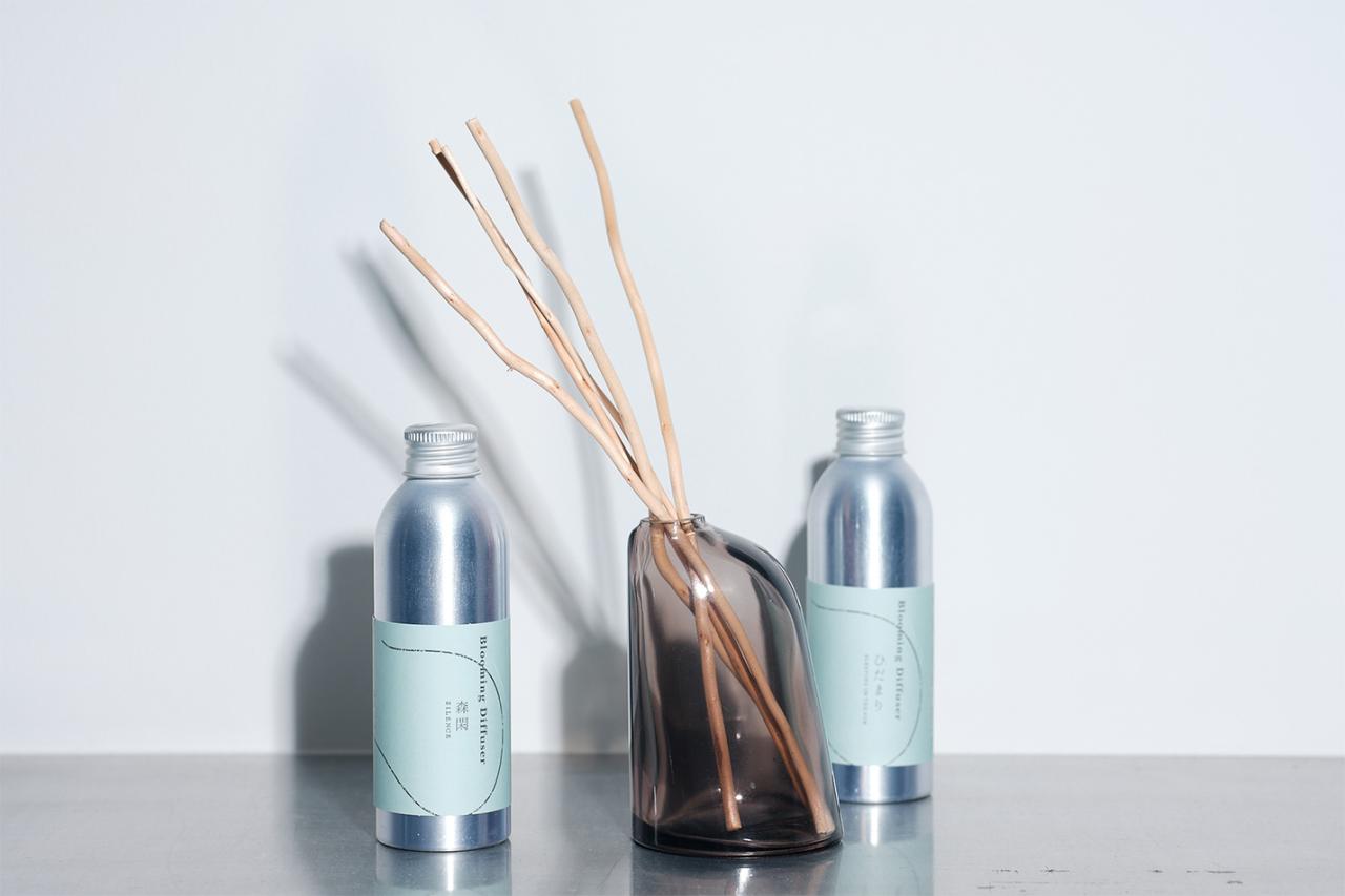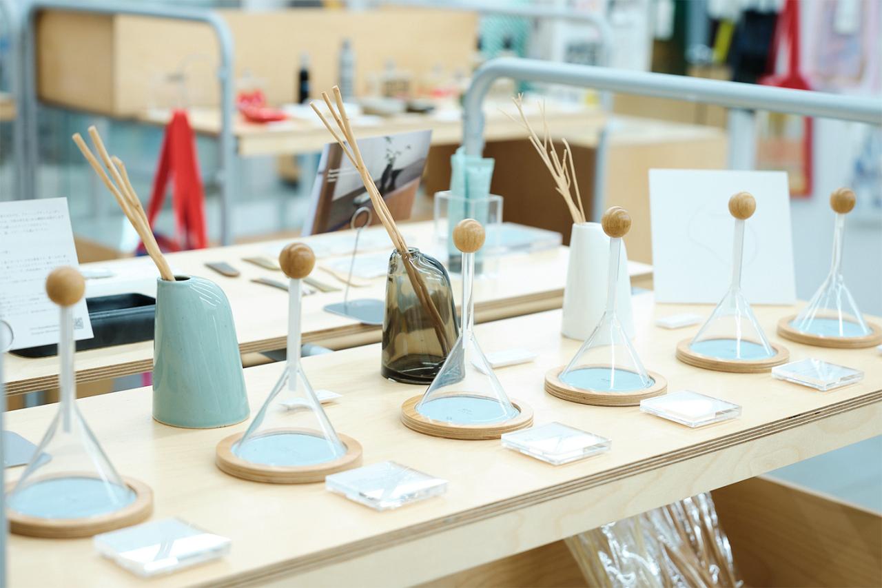 特に、山中湖にアトリエを構える「暮らしの香り」のアイテムが豊富。「森閑」「ひだまり」「苔寺」などナチュラルな香りも珍しく、ブランドオリジナルの器も美しい。「暮らしの香り」でユニークなのは、硯のようなデザインのフレグランスバー。少しずつ削ることで香りが立つ仕組みだ。香りを立てるこの瞬間、気持ちも整う。心を落ち着け、目の前のアートや暮らしと丁寧に向き合えそうだ。