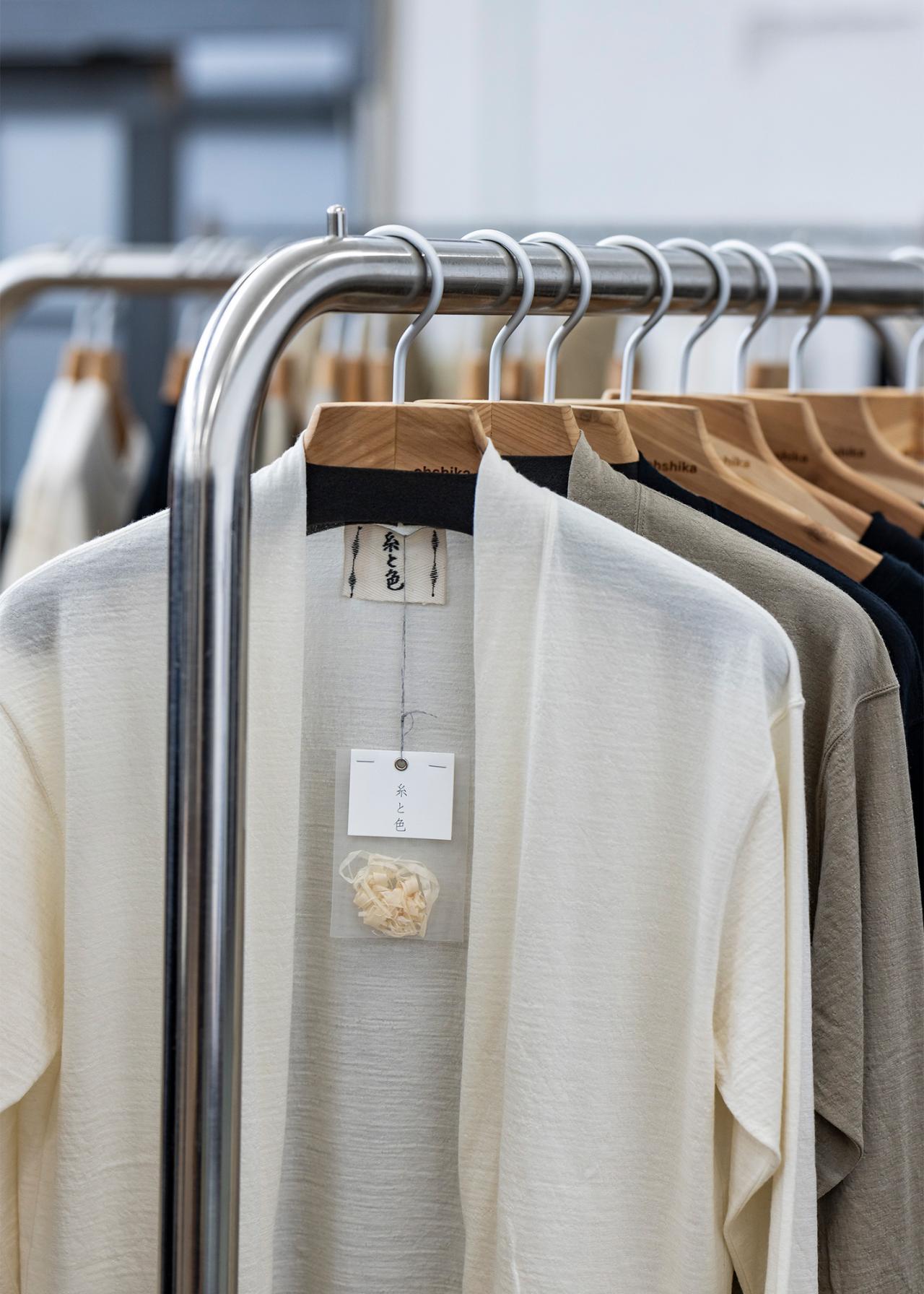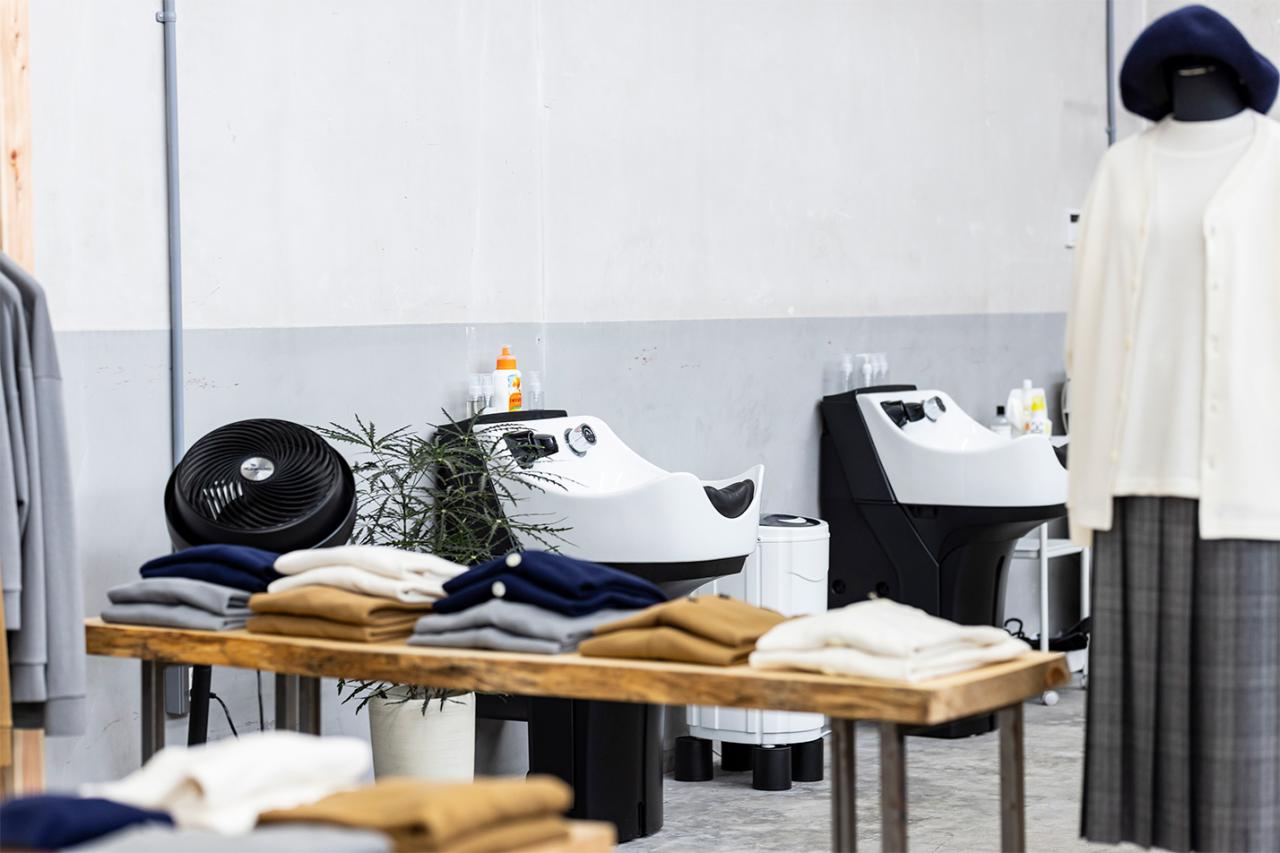 生地を織り、服を仕立て、販売する、服づくりの川上から川下までを一貫して手がける“産直”店舗として2021年4月にオープン。その2年半後、2023年11月29日(いいふくの日)には、スペースをおよそ2倍に拡張してグランドオープンした。