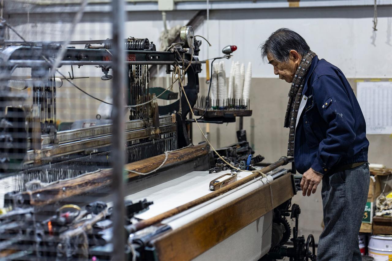 尾州産地の繊維業が最盛期を迎えた1950年代には、100人以上の従業員がこの木玉毛織の工場で働き、九州から集団就職に来て、敷地内には寮や守衛室まで備えていたという。生地を織れば、どんどん売れる、いわゆる“ガチャ万”と呼ばれる時代だ。しかし、次第にブランドがより安価での生産を求めて、工場を次々に海外へ移転。尾州でも多くの工場が生産から撤退したり、規模を縮小せざるを得ない状況に陥った。