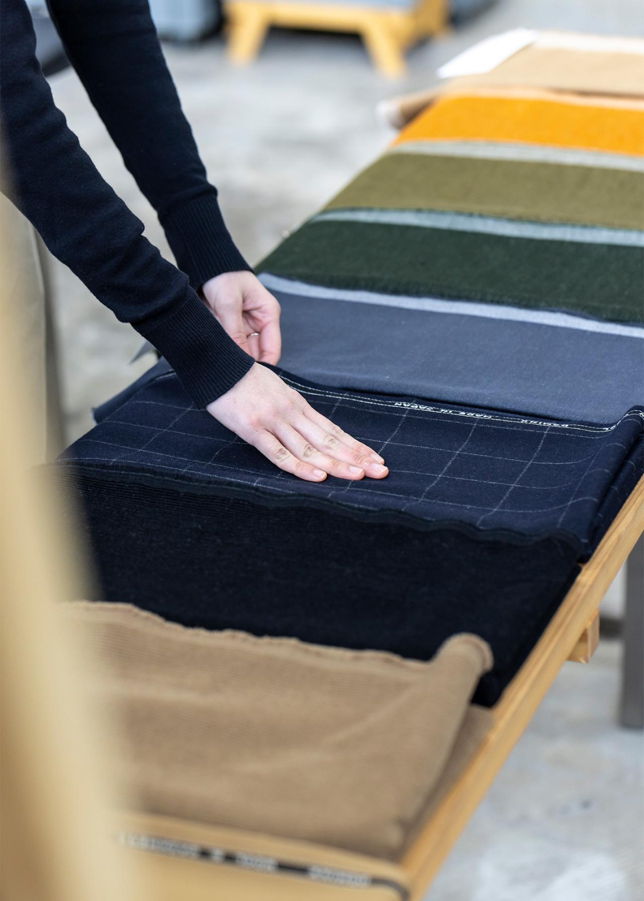 オーダーというとハードルが高いと思うかもしれないが、〈新見本工場〉では生地作りから販売までを一貫して手掛けているため、大幅にコストを抑えることができる。アパレル業界ではメーカーが商品を直販することは、ある意味で御法度と言えるかもしれないが、この体制によって本当に良いものを、作り手としても納得いく価格で届けることができるのだ。