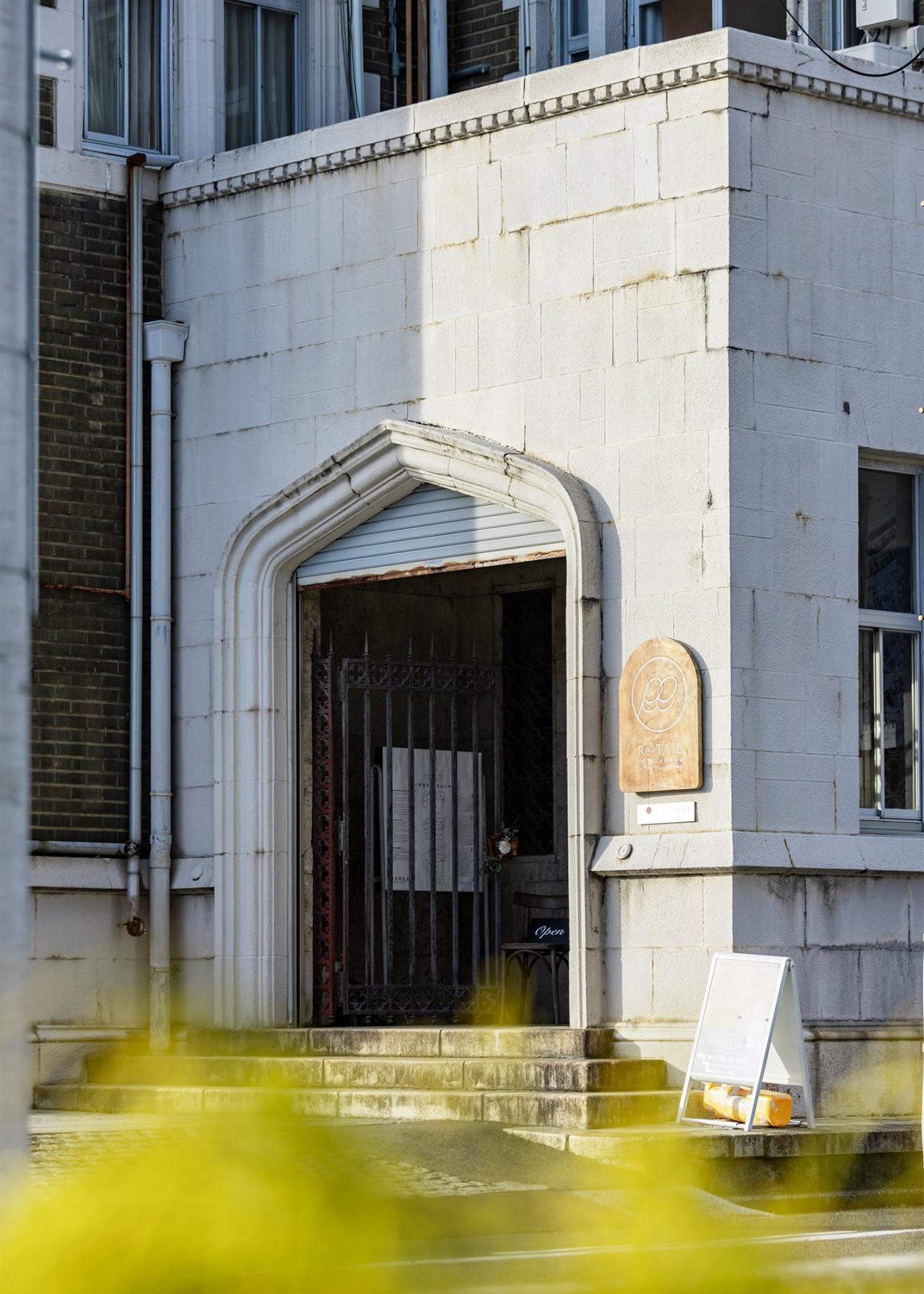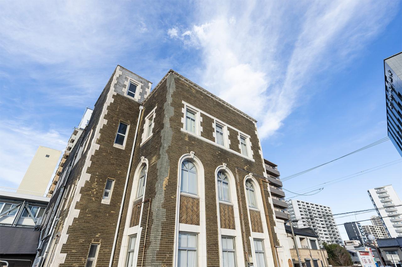 JR尾張一宮駅のすぐ東に、繊維産業で栄えた愛知県一宮市のまちを、長きにわたり見つめ続けてきたビルがある。一枚一枚風合いの異なるスクラッチタイル、白い隅石の縁取り、縦のラインが印象的なゴシック風のアーチ窓。3階建てのそのビルは、どこを切り取っても端正で、隙がなく、絵になる。