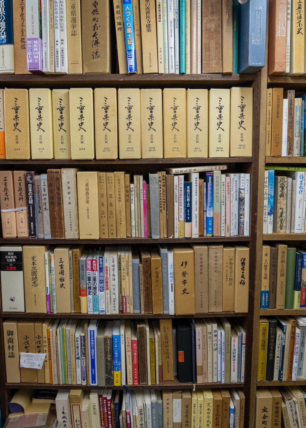 伊勢市には古本屋が少ないため、バラエティに富んだ本を置くように心掛けているという奥村さん。店内にはジャンルのさまざまな本がぎっしりと並べられている。伊勢神宮が近いことから、神道関連の本も豊富だ。