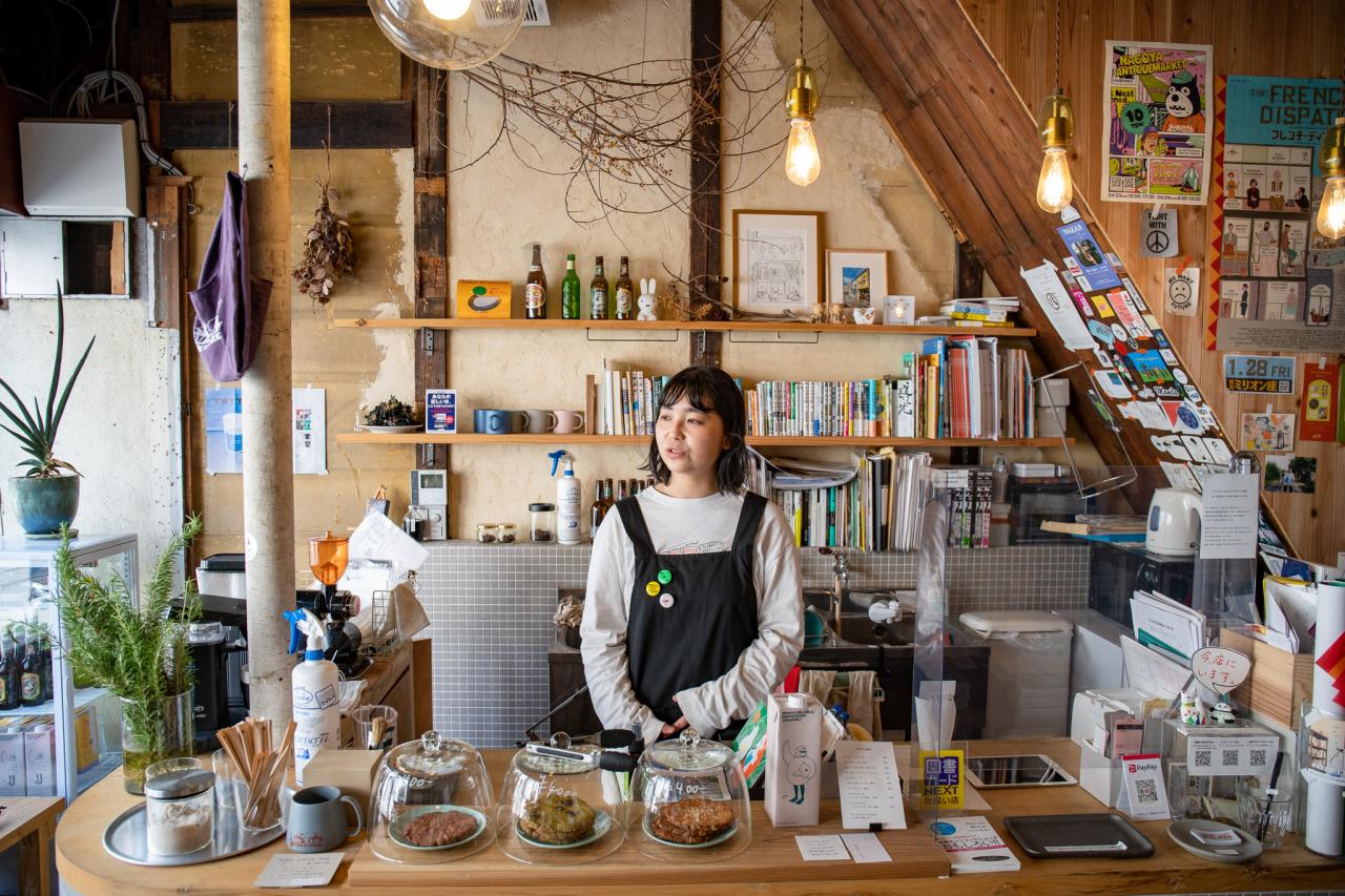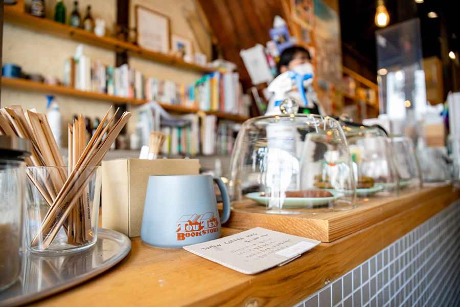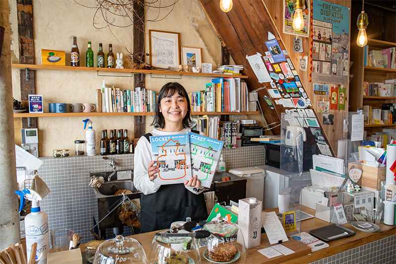オーナーの古賀詩穂子さんによれば、このあたりは昔から長く住んでいる人が多いそう。「近所の人との距離感は近いです。この商店街も通学路になっていて、小学生の登下校で時間を知る、みたいな。のんびりしていて、気持ちのいい場所です」。そんな街で本屋を始めたのは、地元への愛着があったから。「大学も最初の就職も名古屋。転職して東京で働いたこともあったけれど、やるなら名古屋と考えていました。思い出もたくさんあって暮らしたい場所だし、地域に何か還元できたらいいなと。誰が来ても楽しめる場所にしたくて、カフェスペース、イベントスペースもつくりました」。入ってすぐのカフェカウンターで、ふらっとお店に来た人と、気軽にあいさつを交わす。そんな親しみやすさもお店の魅力となっている。