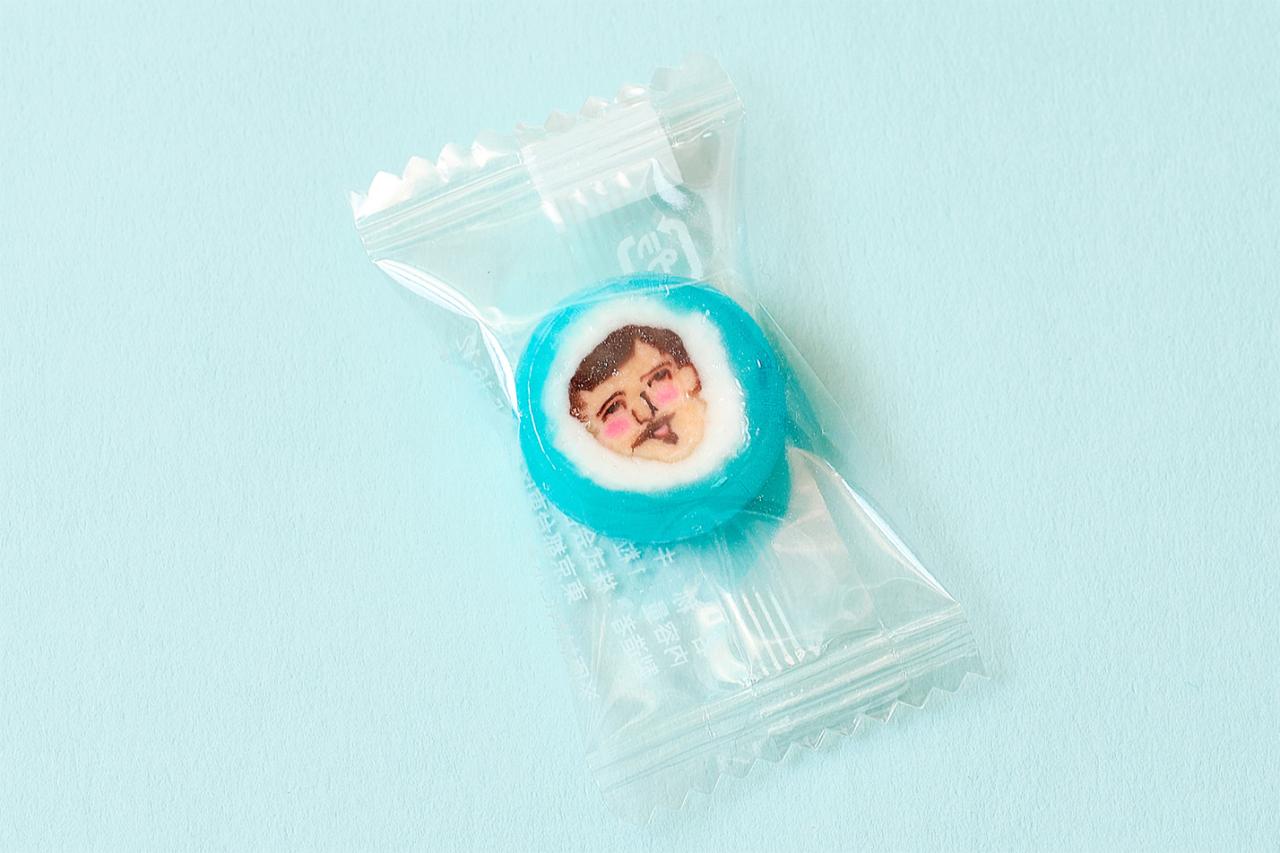 ロングセラーなのが、台東区根岸の「金太郎飴本店」とコラボレーションしたキャンディ。“どこを切っても同じ模様”ではあるが、一つ一つ微妙に異なる表情を見比べるのも楽しい。味は昔懐かしい、ソーダ味。