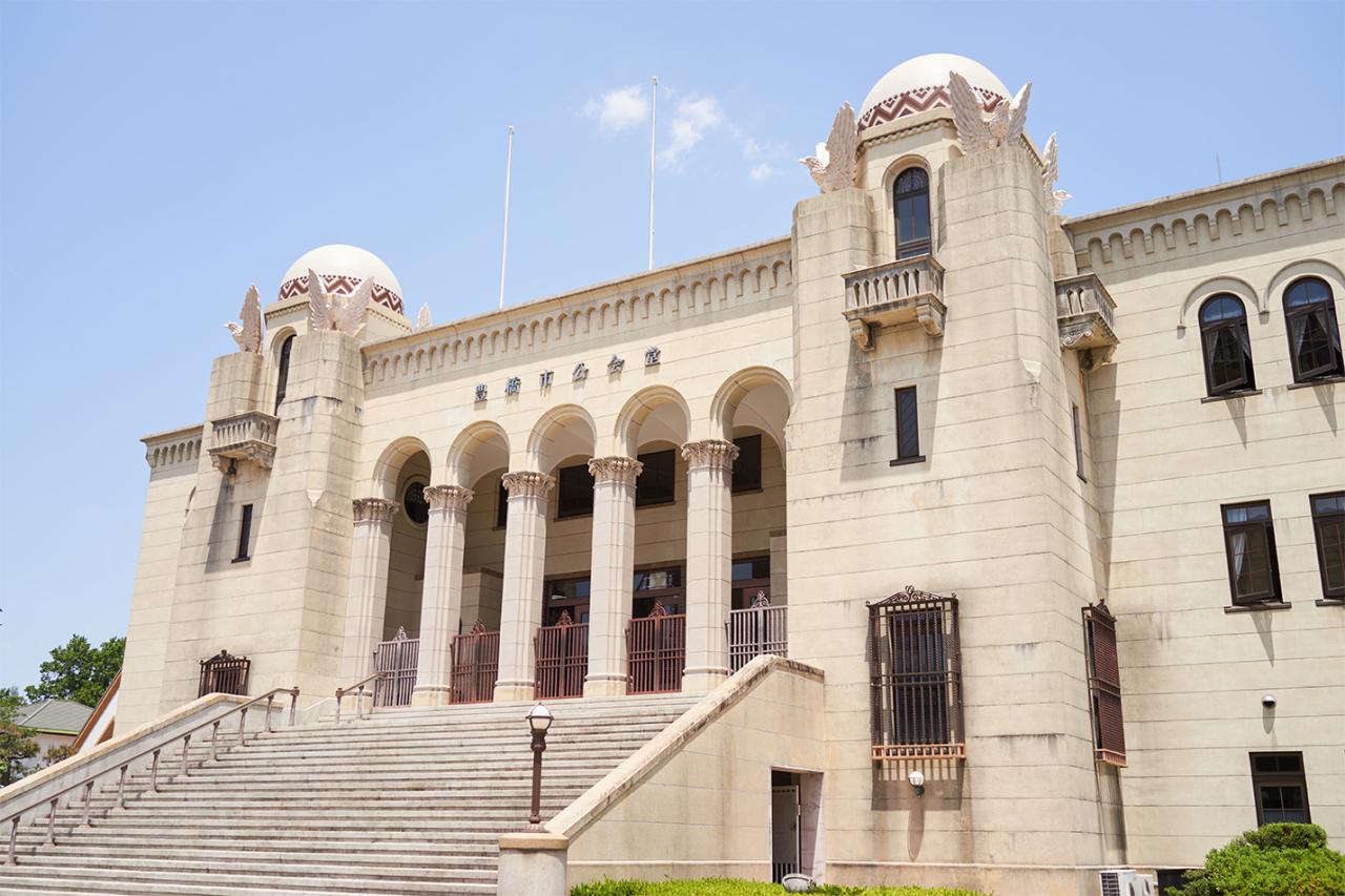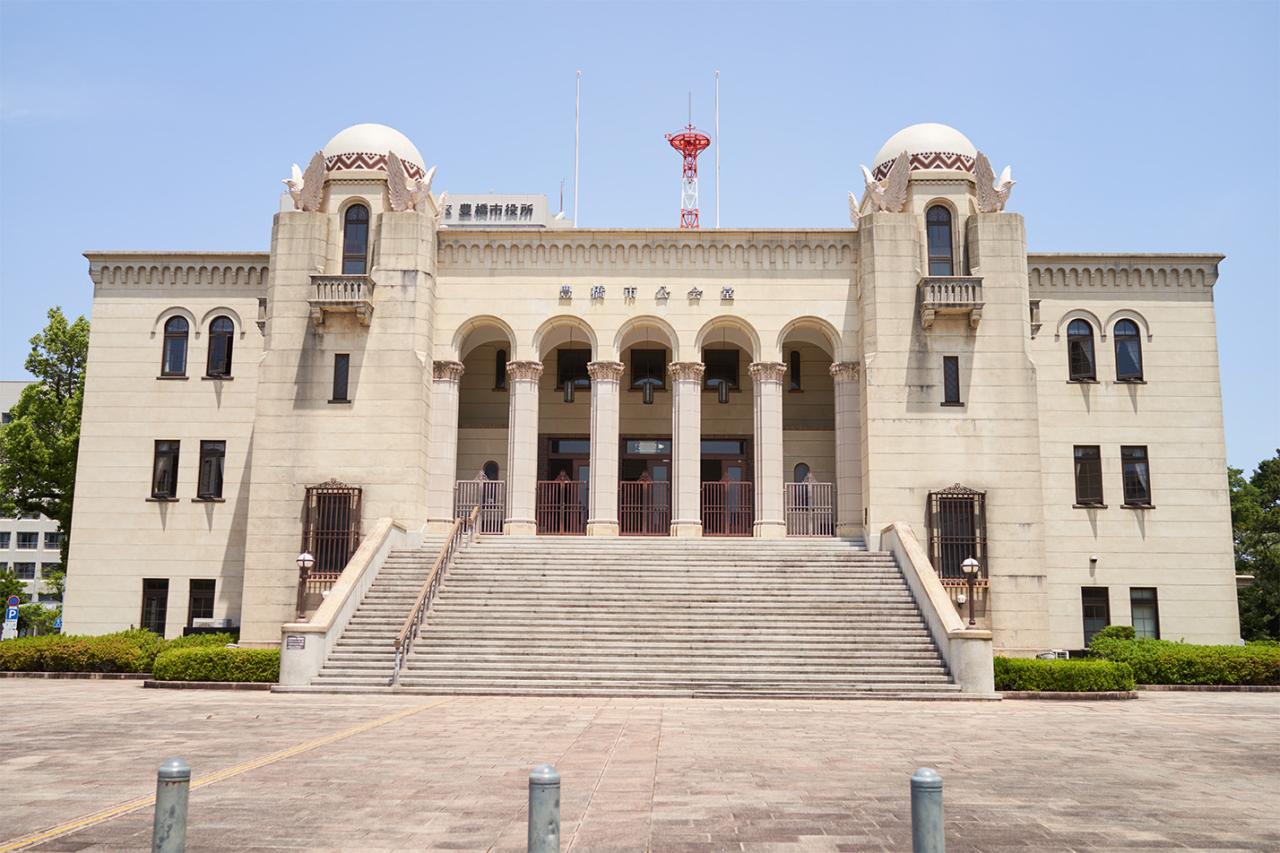 新川駅から豊橋鉄道市内線に乗り、次は市役所前駅に降り立つ。お目当てのカフェに行く前に、豊橋市公会堂に立ち寄った。
