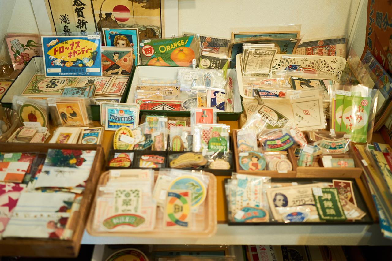「特にラベルのような印刷物が大好きで、ついついたくさん仕入れてしまいます。千代紙も昔、自分が買ってもらえなかった記憶が残っていて、憧れの気持ちから惹かれてしまうんですよね。この昔懐かしさにときめいています」と原田さん。最近ではレトロブームの影響で若いお客さんが増えているのだとか。意外と男性客も多く、年配の常連客もいるなど、幅広い年代がレトロブームの虜になっているよう。