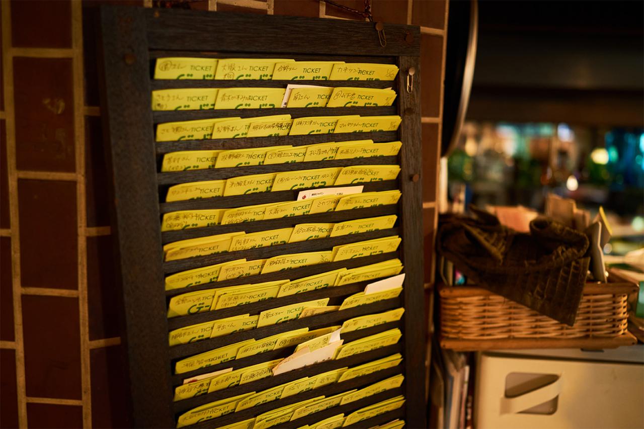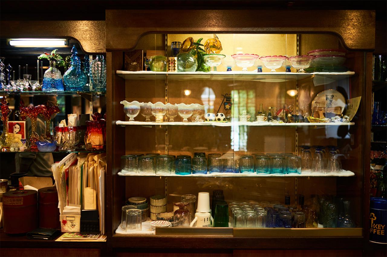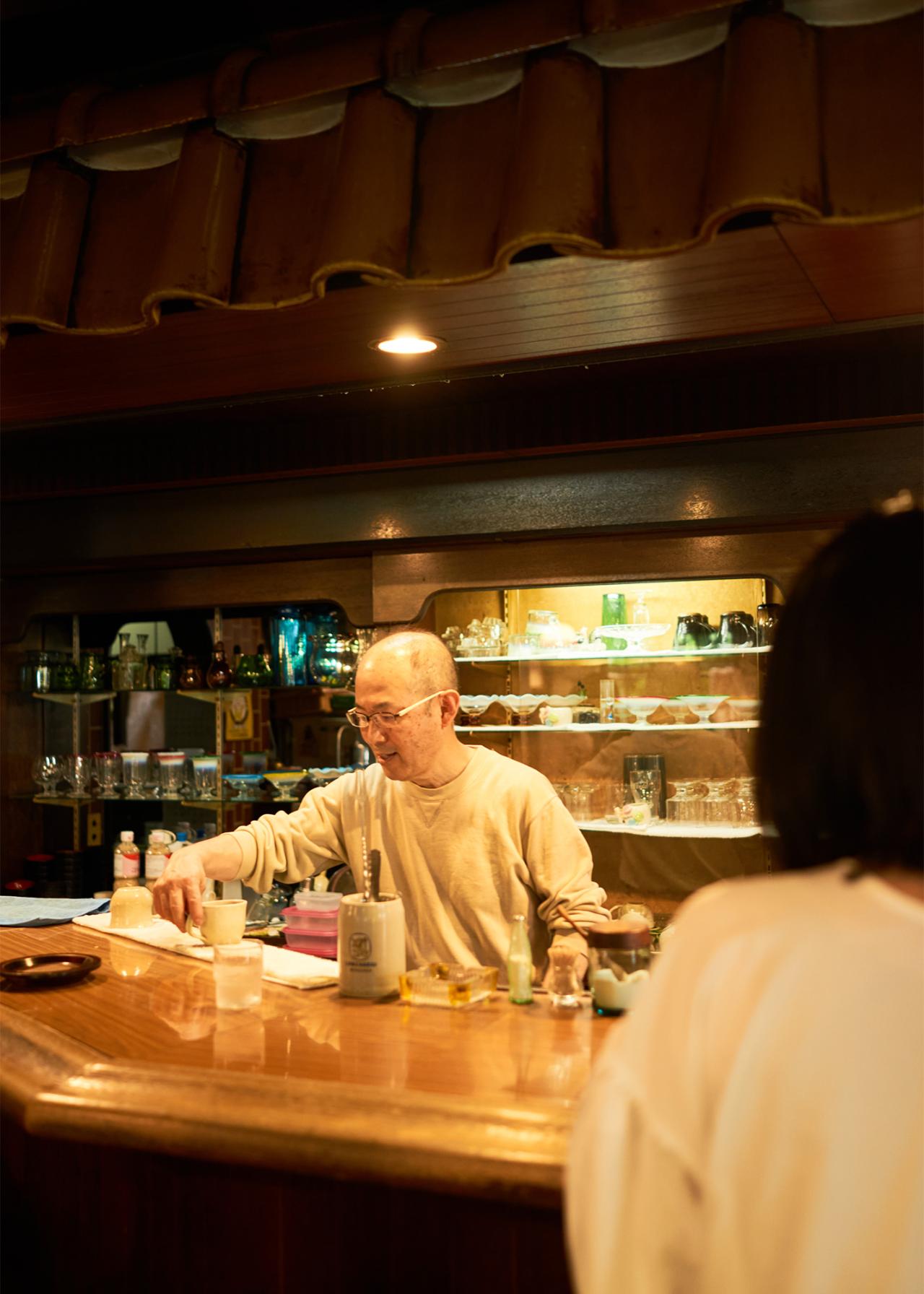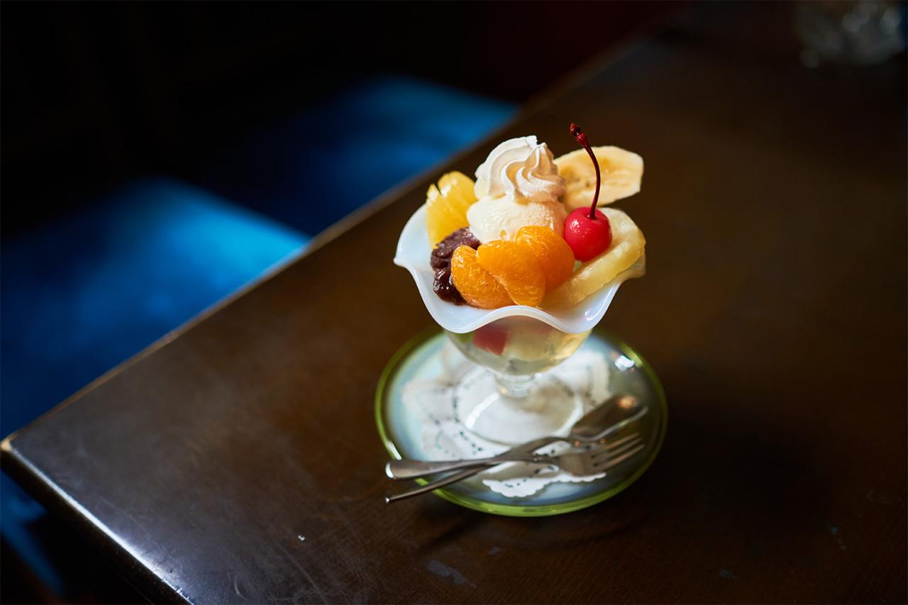今では喫茶店の数が減ってしまったが、〈cafeびーどろ〉は今も変わらず、地元住民の憩いの場として愛され続けている。カウンター横の専用棚には、常連客の名前が書かれたコーヒーチケット(※前売りのドリンク回数券のこと)がずらり。コーヒーチケットを販売するシステムも、昔から変わらないスタイルなのだそう。利用客は地元の方が中心だが、最近では若い方も訪れるようになった。思わず写真に収めたくなるようなフルーツパフェやあんみつなどのデザートが人気。確かに、昭和にタイムスリップしたような没入感が味わえてたまらない。