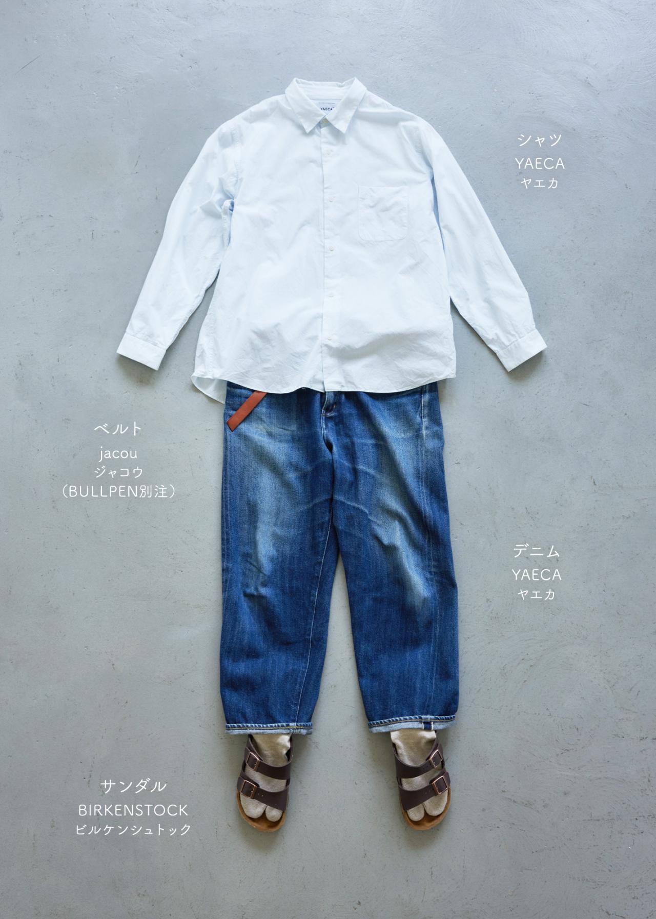 YAECAのシャツが大好きで、10着以上を着まわしています。足元がラフでもシャツさえ着ていれば、シャキッとして見える(気がします)。