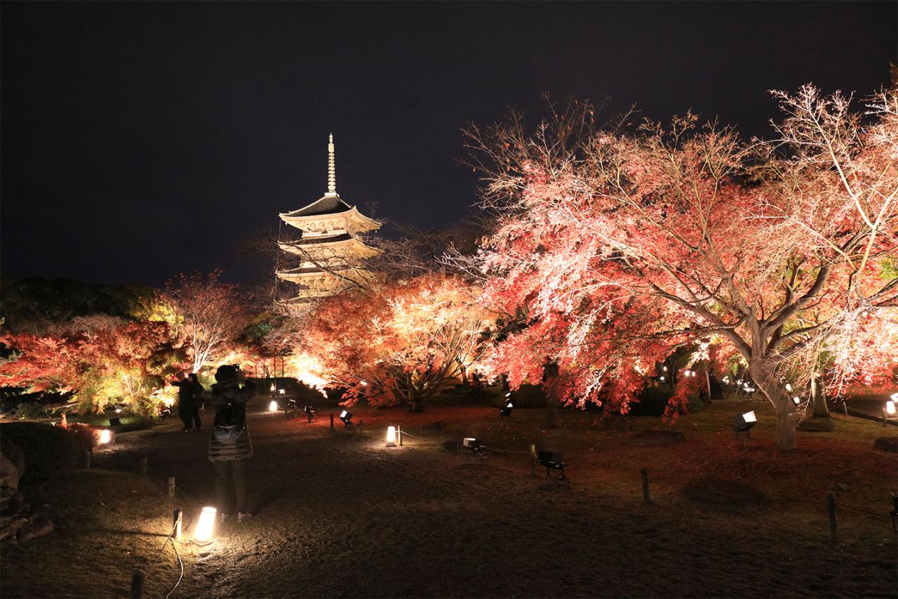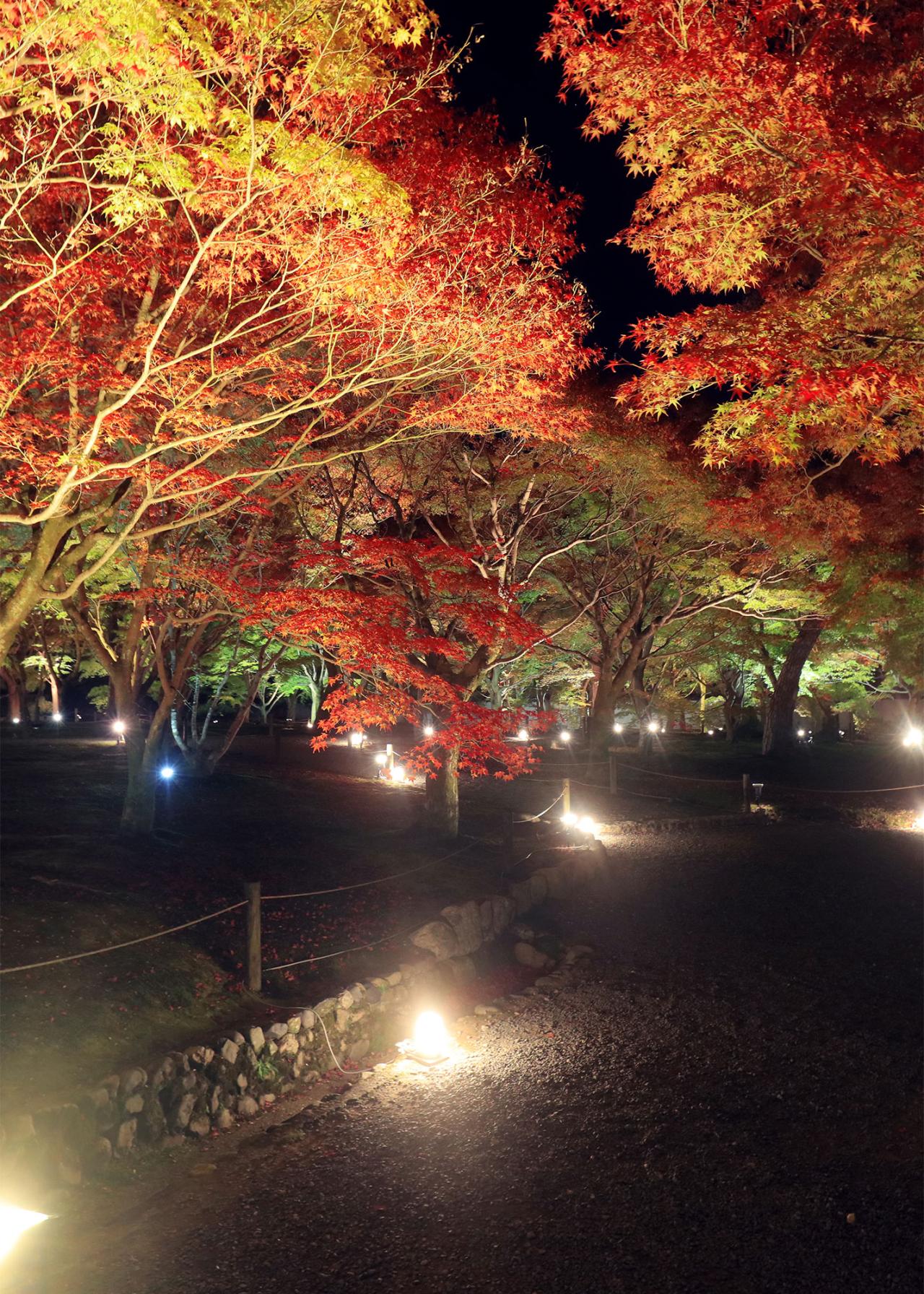 特別拝観では、一般拝観開始前に先行入場し、人数限定で紅葉を堪能することができる。早朝での実施のため、次の目的地にも比較的早い時間から移動でき、紅葉旅の効率アップにもつながりそうだ。続いては、「特別拝観」でしか見ることが叶わないライトアップに参加できるというもの。