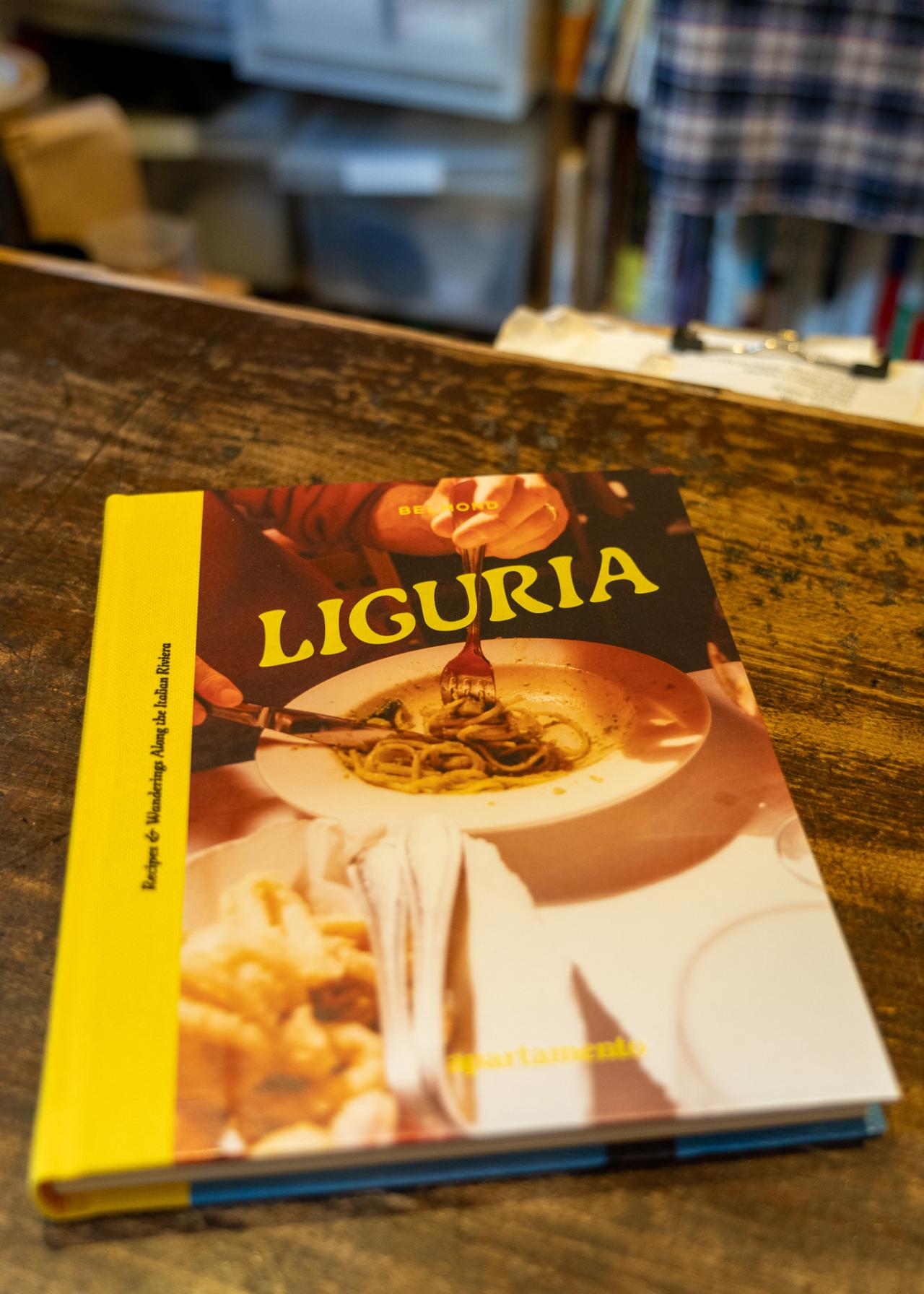 数ある本のなかから、今回旅におすすめの本として選んでいただいたのは、イタリア・リグーリアの食をテーマにした雑誌「LIGURIA: Recipes & Wanderings Along the Italian Riviera」。スペインのインテリアマガジン「apartamento」が発行した食のシリーズ第一弾だ。