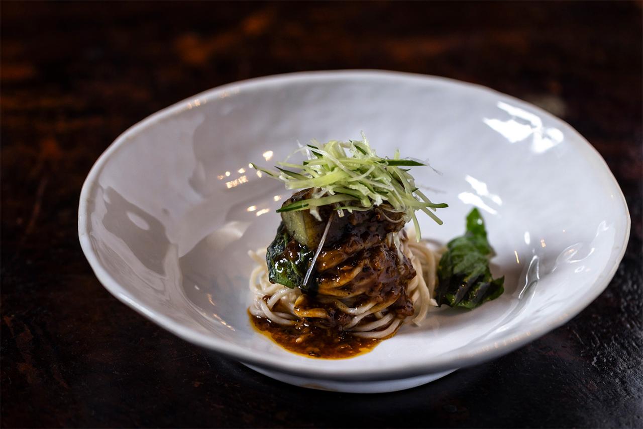 最後はジャージャー麺。もちっとした手打ち麺に香ばしい味噌だれ、とろけるほど柔らかな焼きナス、シャキシャキのきゅうり、爽やかなバジル。しみじみと、美味しい。