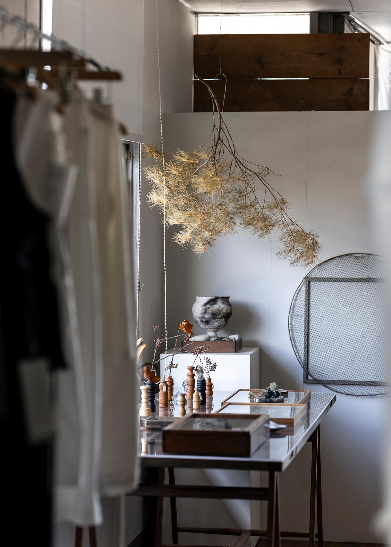 旅に出て、はじめましての場所で味わう料理と、めぐり逢う服。うつわも、料理も、生けられた花も、植物の色に染まるスカートも。この旅の間、目に映る景色はみな美しく、心の中で何度もシャッターを切るように、はっきりとした記憶として脳裏に刻まれた。きっとこれからも、幾度となく“わざわざ”旅をして、二つの店を訪れることだろう。そして、それはやがて、“いつもの”旅へと変わっていくはずだ。