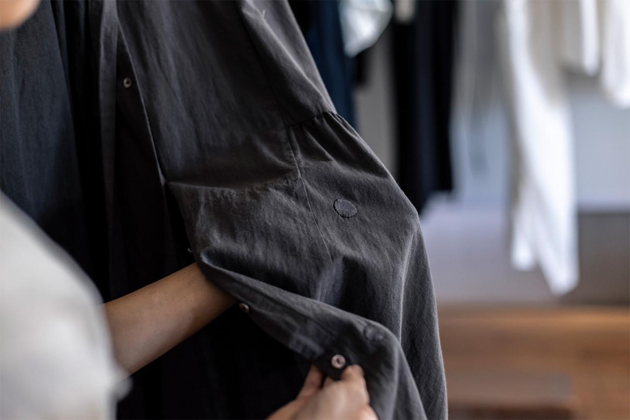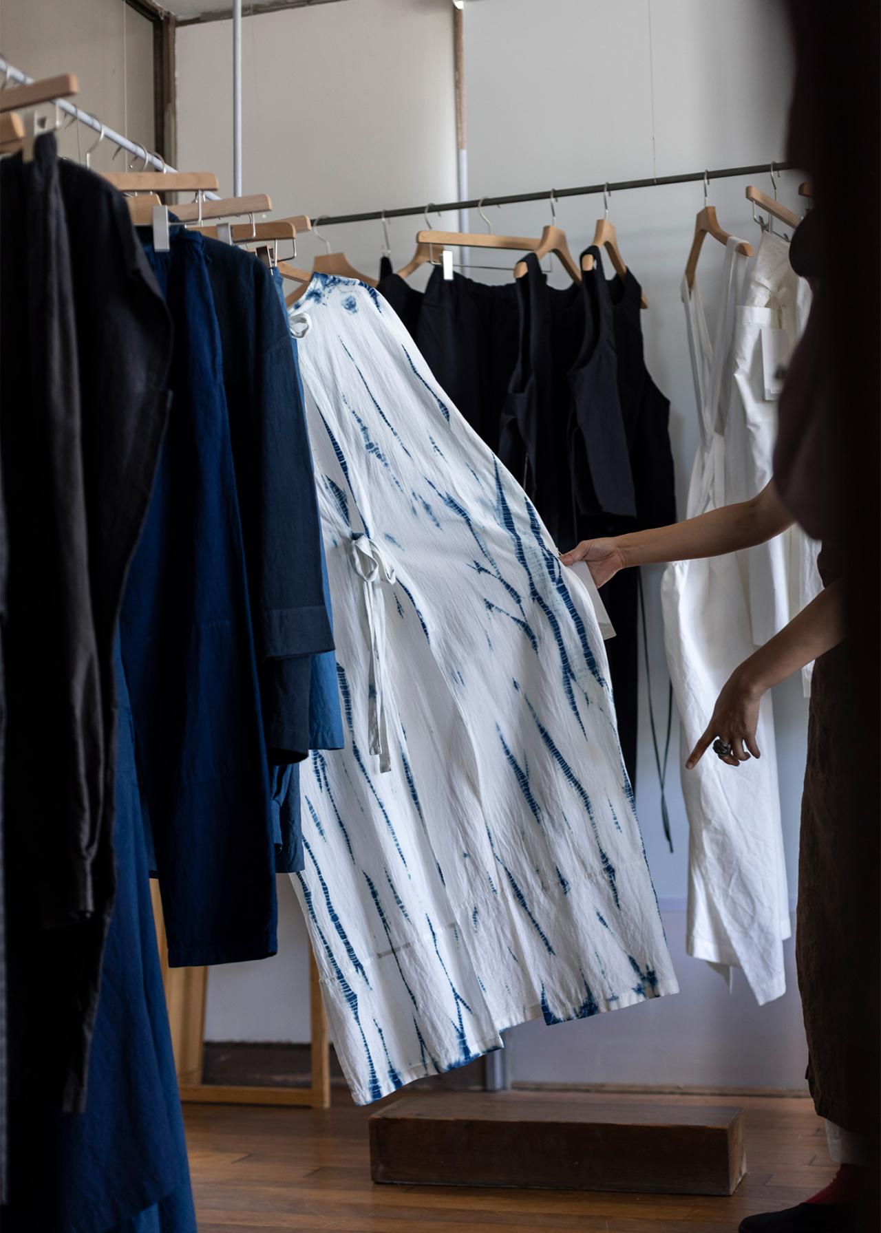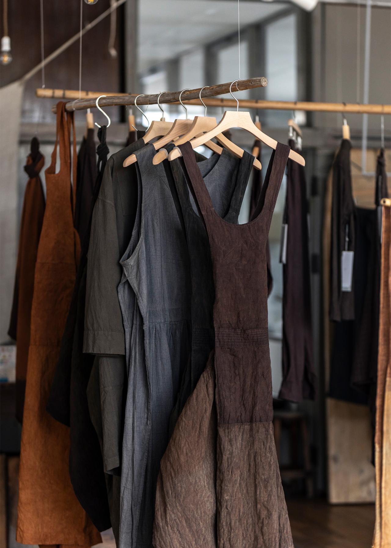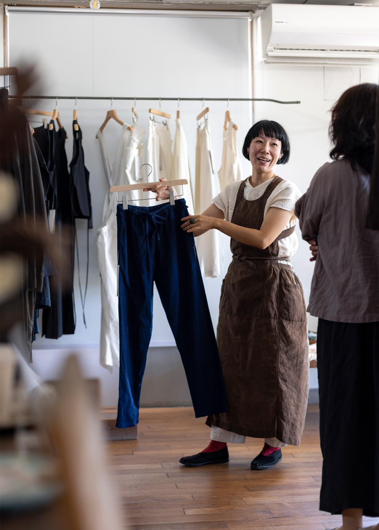 「私たちは服を作って販売することが最終目的ではなくて、その先に、できるだけ長く着続けてもらう、育つ服を作ることを大切にしたいと思っているんです」。そんな、さやかさんの言葉が印象的だった。着ているうちに身体に馴染み、風合いが増していく。色が褪せれば染め直し、擦れやほつれができれば修繕して、愛着を持ちながら長く着続けていきたい服。そんな一着に、ここでめぐり逢える。