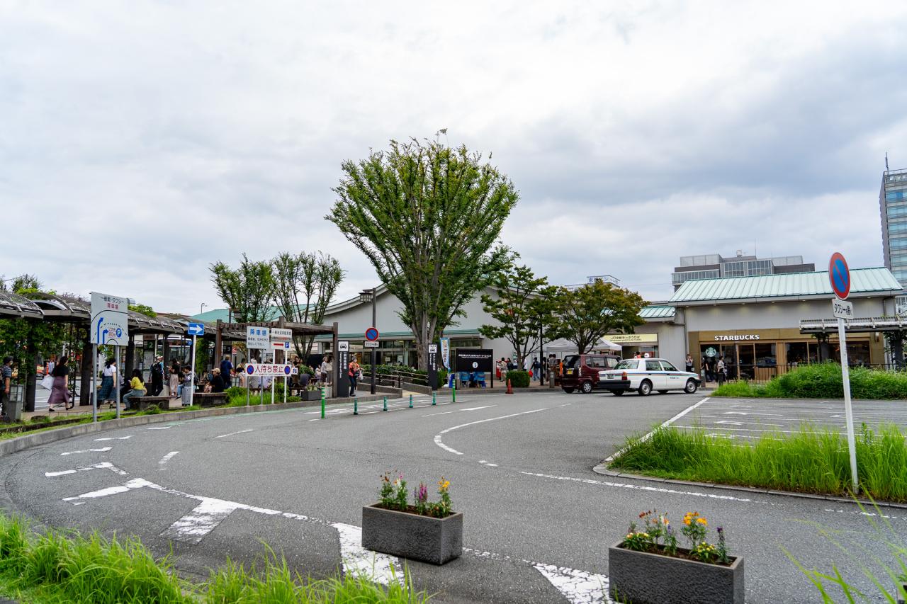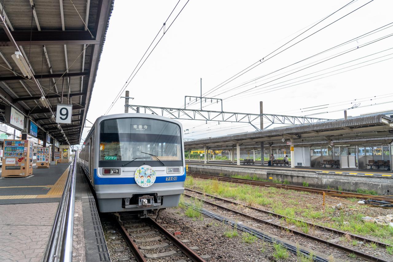 えがしらさん号に乗り込みのどかな風景を走ることおよそ20分、スタート地点の伊豆長岡駅に到着です。