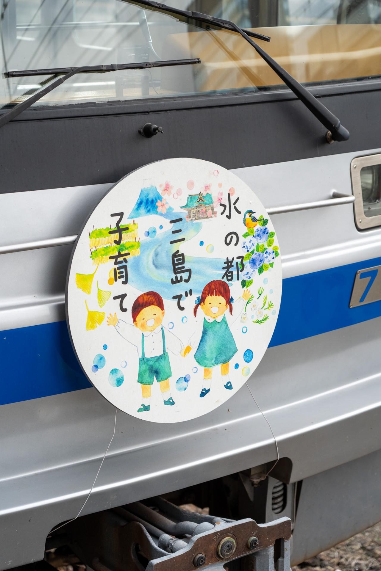 三島駅で列車に乗ろうとホームを歩いて二度見、見覚えのある絵が列車のヘッドマークに!?そうなんです以前取材させていただいた「えほんやさん」のえがしらみちこさんの絵がヘッドマークになっているではありませんか!すごい、思わず記念撮影!