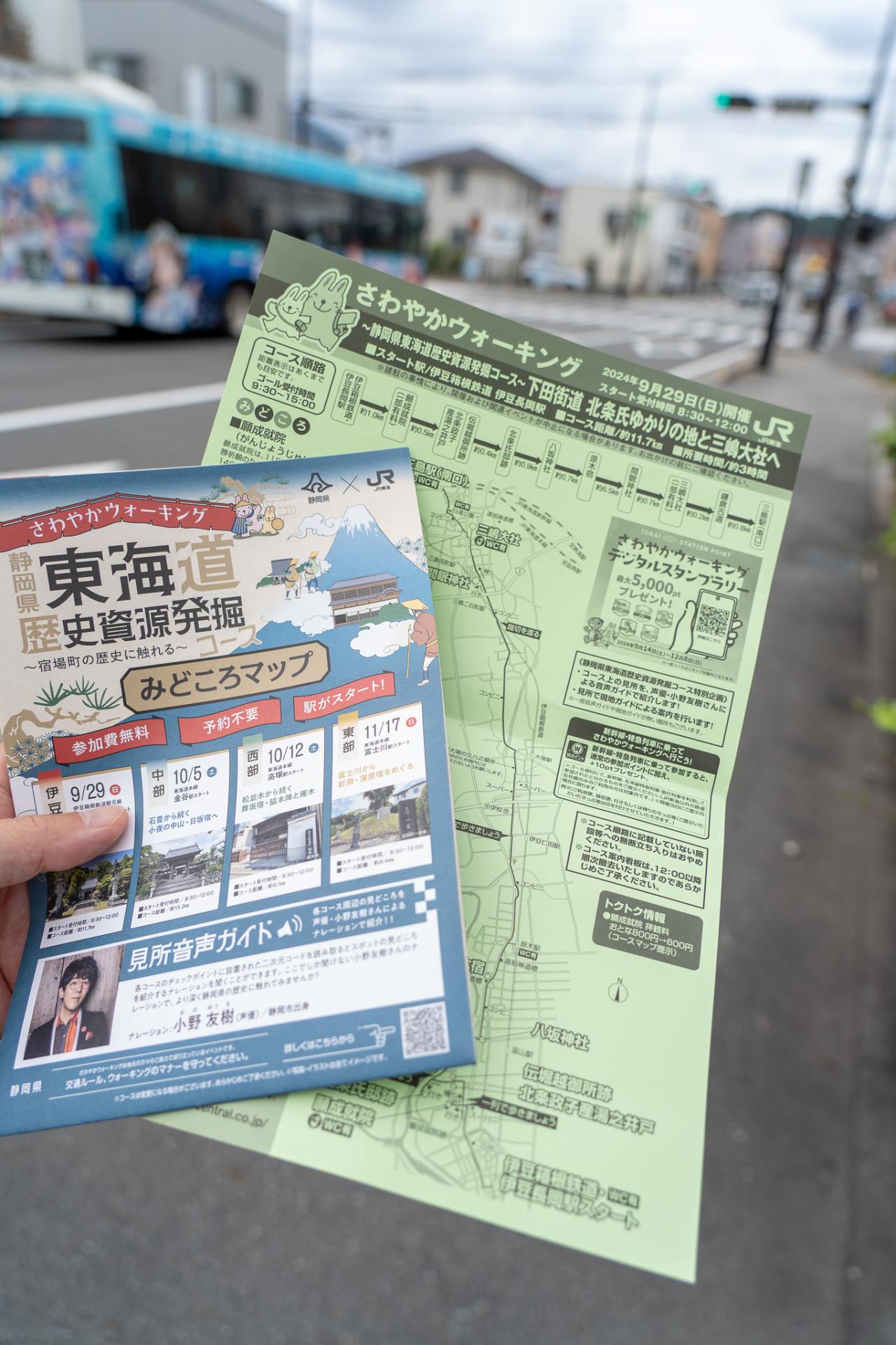 今回参加させていただいたのは「さわやかウォーキング 静岡県東海道歴史資源発掘コース」全4コースある初回の伊豆編です。静岡県との共催で東海道の歴史的スポットをめぐりながら歩くコースとなります。