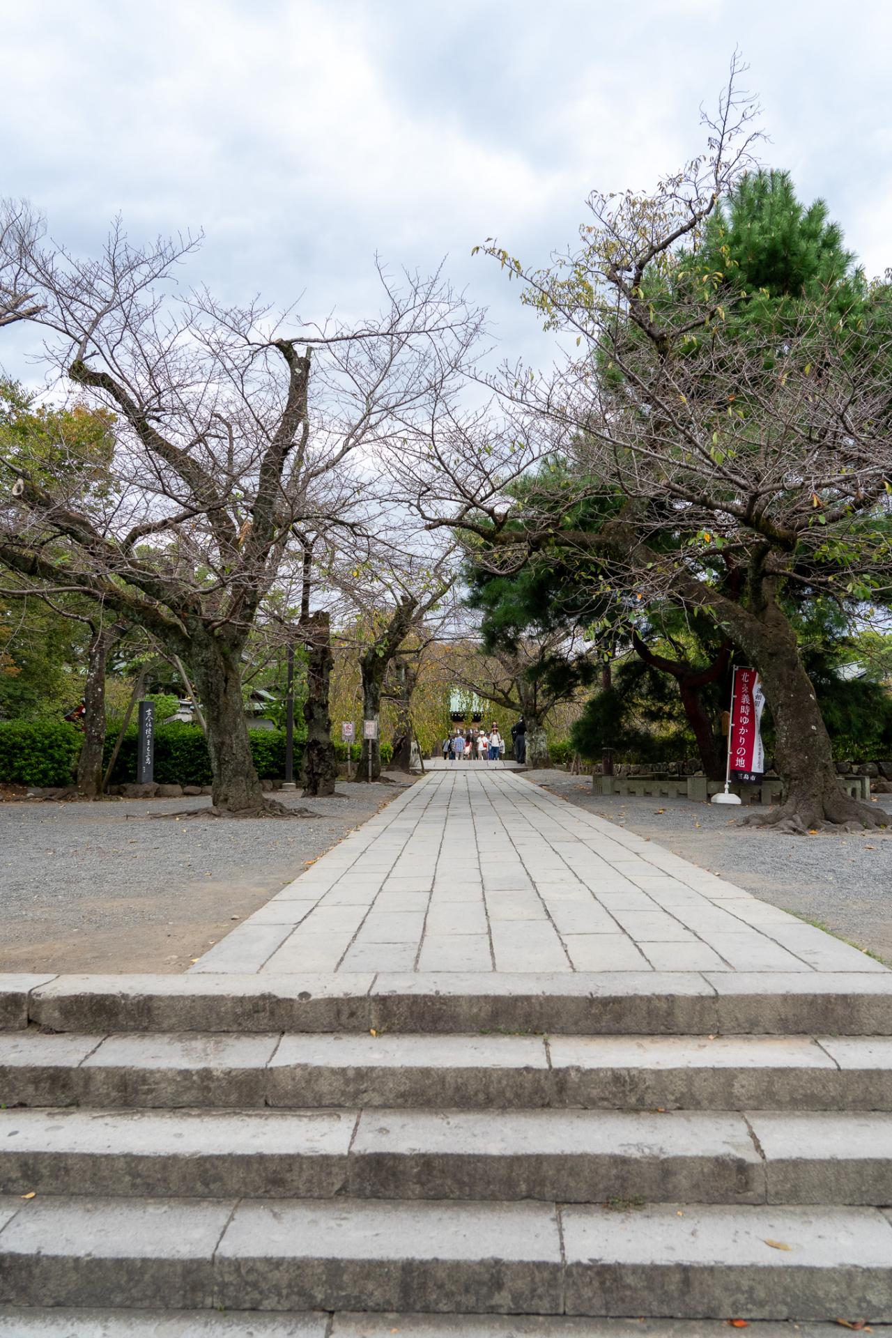 伊豆長岡駅前から三島駅までの12キロ弱、途中「北条政子産湯之井戸」や「伝堀越御所跡」「三嶋大社」など伊豆〜三島の歴史的名所をめぐります。