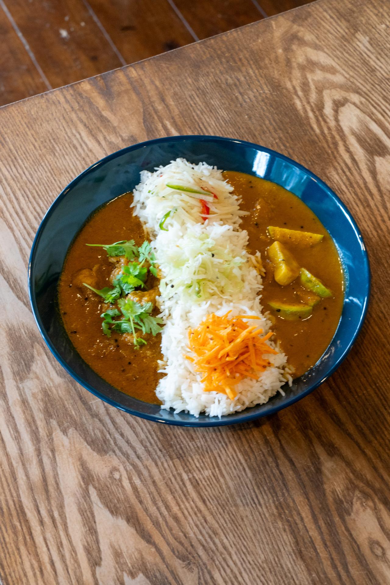 本日のメニューは南インドの「ケララチキンカレー」と「エビとズッキーニのココナッツカレー」当然あいがけ大盛りをオーダー。ハイ最高でした。歩いて疲れたカラダにビールとカレーが染み渡ります。他日のメニューも気になりますね。。また来ます。