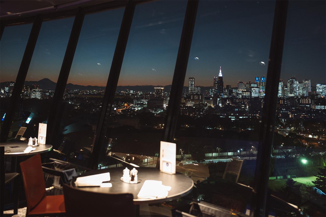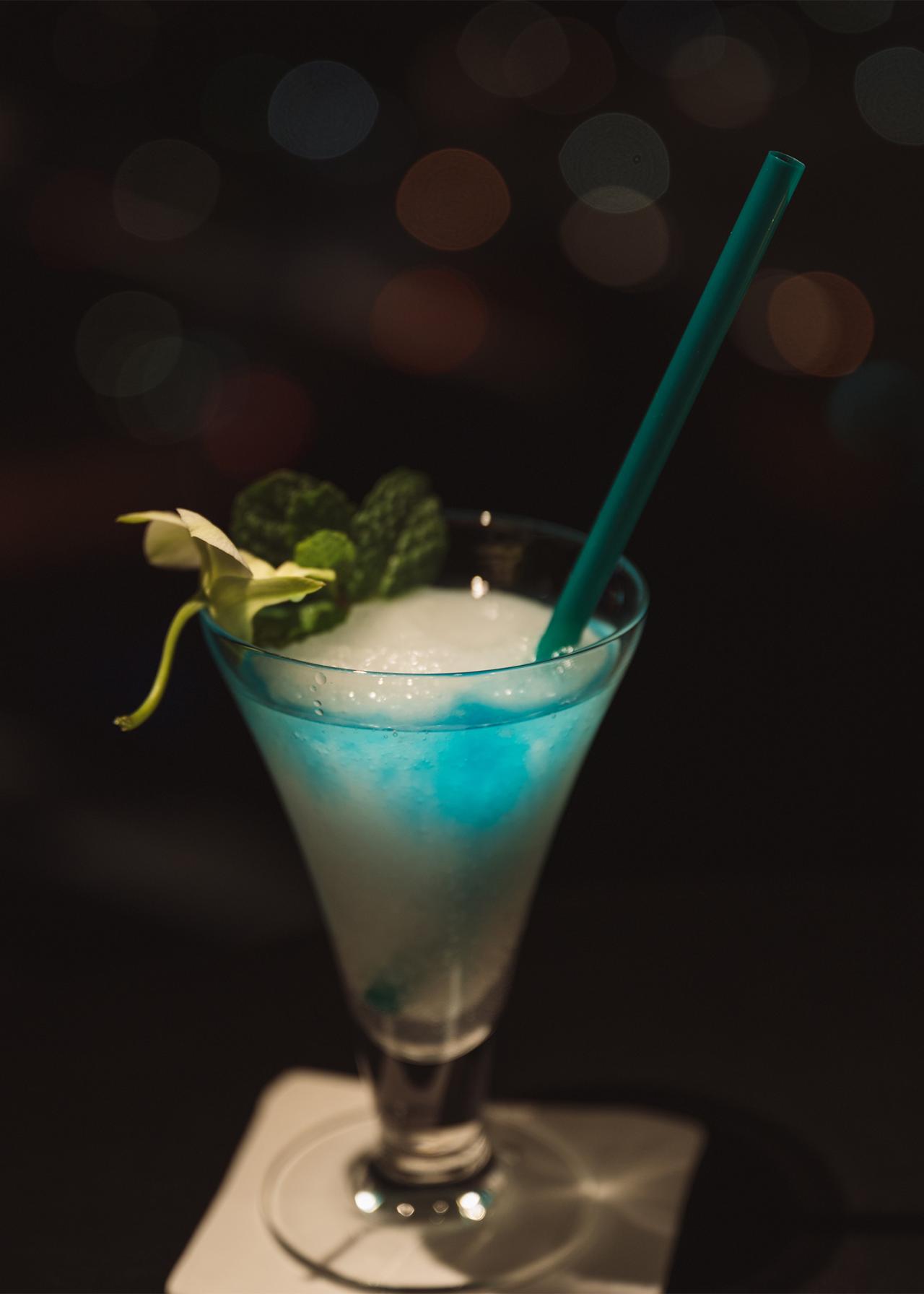 夜には「SKY BAR」を訪れ、きらめく東京の夜景を眺めながらカクテルを楽しみました。この日選んだのは、開業当時からあるオリジナルカクテル「Blue Sky」をオーダーしました。爽やかなフローズンカクテルで、一日の疲れを心地よく癒してくれます。このレストランは、全面ガラス張りなので、視界いっぱいにキラキラとした夜景が広がり、都会の穴場デートスポットを発見した気分です。