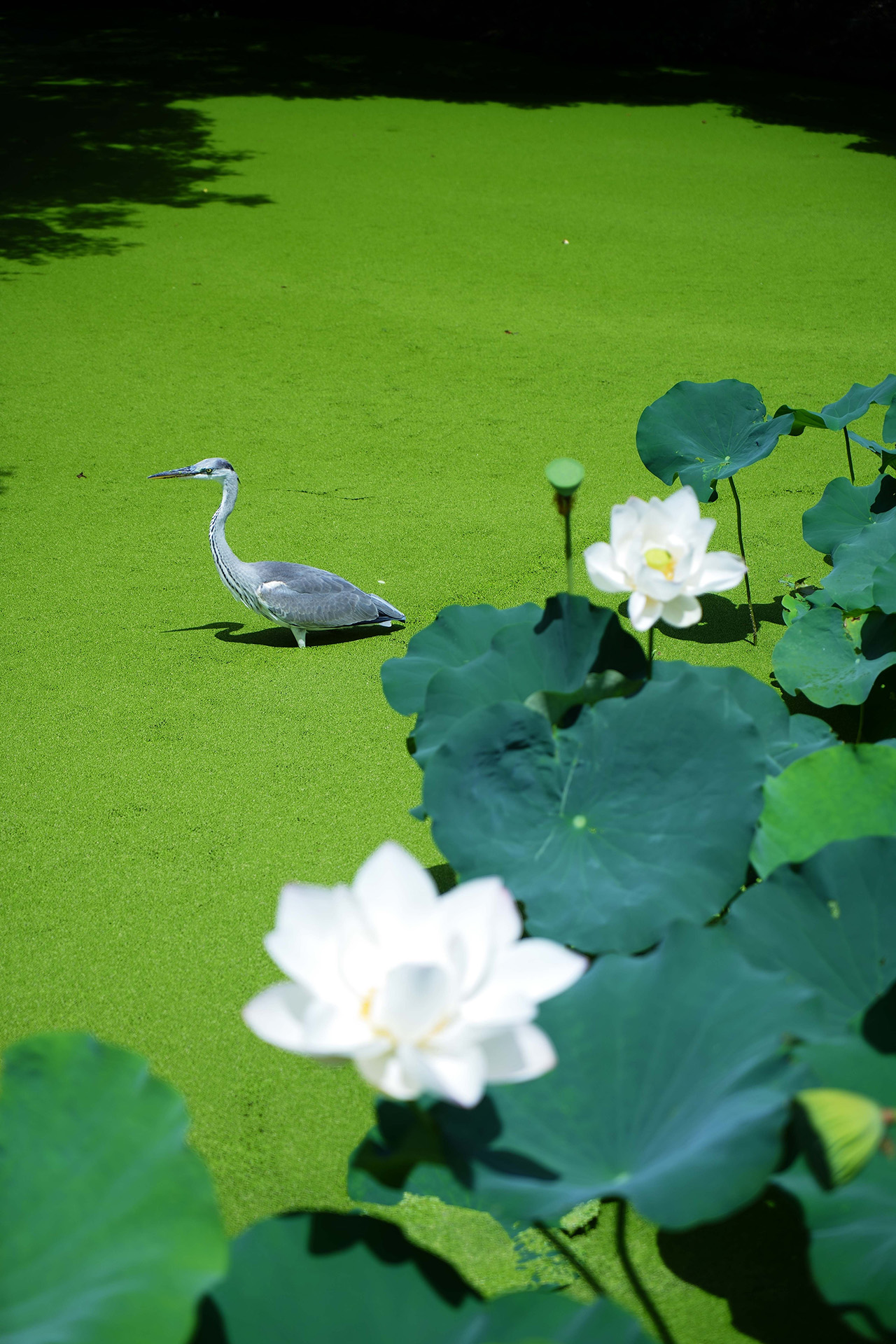 優美な姿。美しいグリーンとのコントラスト。幻想的な雰囲気にしばらく見入ってしまいました。