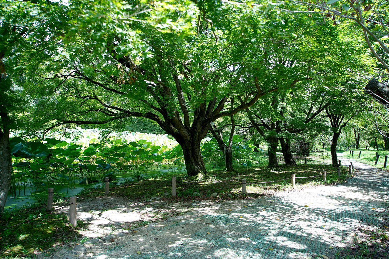 しばし読書を楽しんで体力を回復させた後、今度は「はす池」の方へぷらぷらと散策。木々の緑が太陽の光を柔らかくしてくれます。