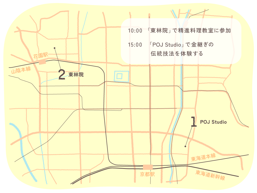 大事にしているお気に入りの器が割れてしまったとき、美しく蘇らせる方法として「金継ぎ(きんつぎ)」と呼ばれる技法がある。“物を大切にする心”から生まれた日本の伝統技法であり、現在も全国各地で金継ぎの体験ができる。今回は古き良き文化を体感するため、京都で金継ぎ体験と一緒に、精進料理教室にも参加してみよう。旅を通して、長い年月をかけて磨かれた日本の伝統に触れていきたい。
