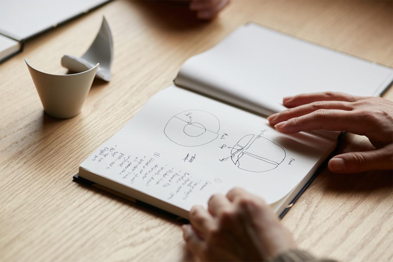 コースの体験時間は全部で2時間ほど。金継ぎそのものや作業の流れについて説明があった後、器の割れた断面を整え、「麦漆(むぎうるし)」で接着する作業まで行う。こちらの体験では、これから直す器に向き合うため、特別に割れた器のスケッチからスタート。どこにどんな割れや欠けがあるか器を全方向から観察し、ノートにスケッチして専用のカルテを作っていく。