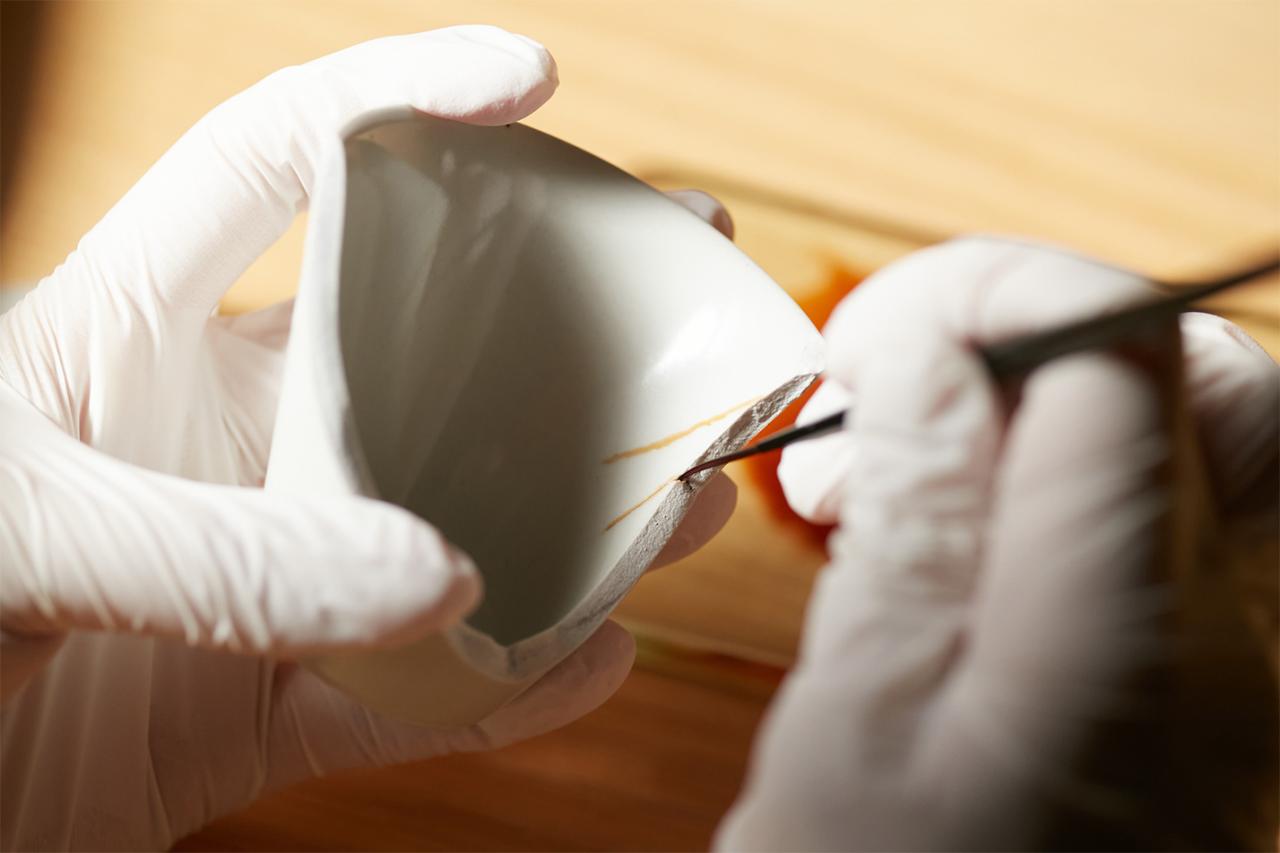 「陶器や釉薬なしの器は漆が浸透しやすいので、継ぎ目の周囲などにシミができる可能性が高くなります。また、慣れていない方にとっては、複数に割れた器をきれいにくっつけるのは少し難しいです。まずは作業しやすい器で体験してから、お気に入りの器の金継ぎにチャレンジすることをおすすめします」