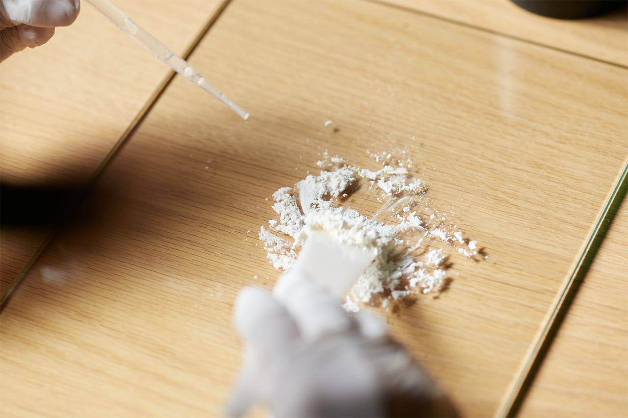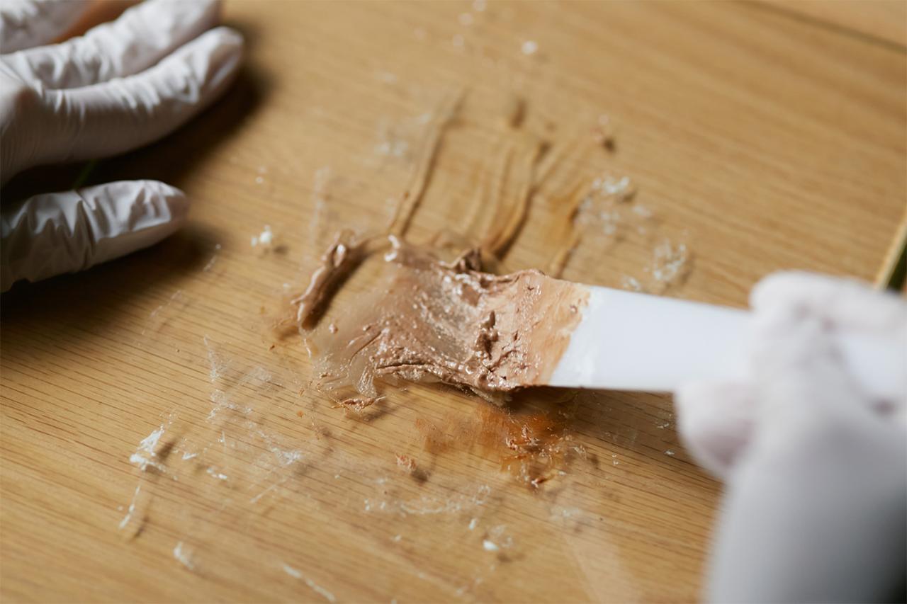 「小麦粉のグルテンを活かしたいので、8の字をかくイメージでこねて粘り気を出していきます。目指すはピザ生地くらいの粘度。同量の生漆と混ぜ合わせたら、麦漆の完成です」