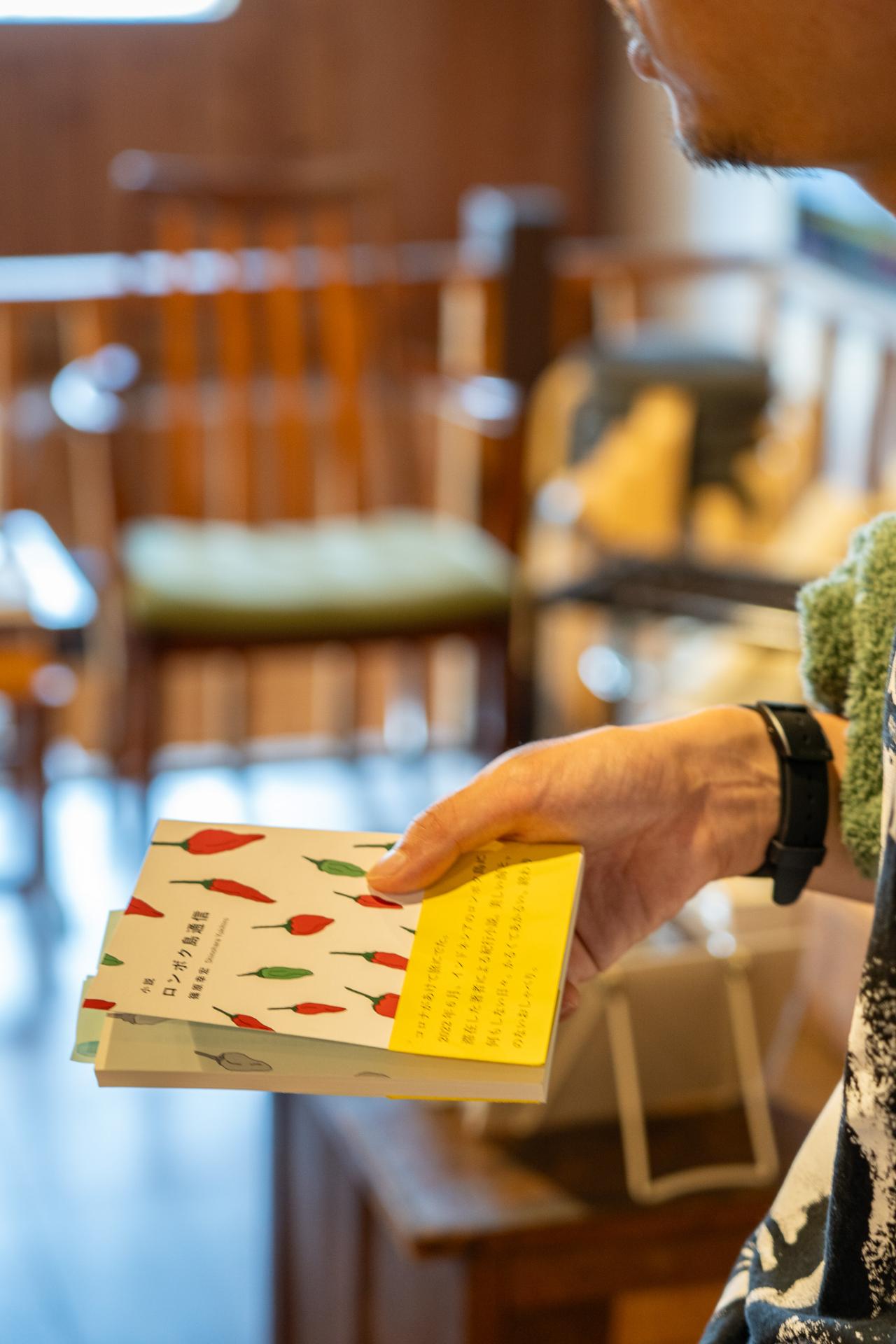 涌上さんに選んでもらった、旅に出る前におすすめしたい本は「ロンボク島通信」。普通の流通には乗っていない幅広いセレクトの〈余波舎/NAGORO BOOKS〉らしい一冊だ。
