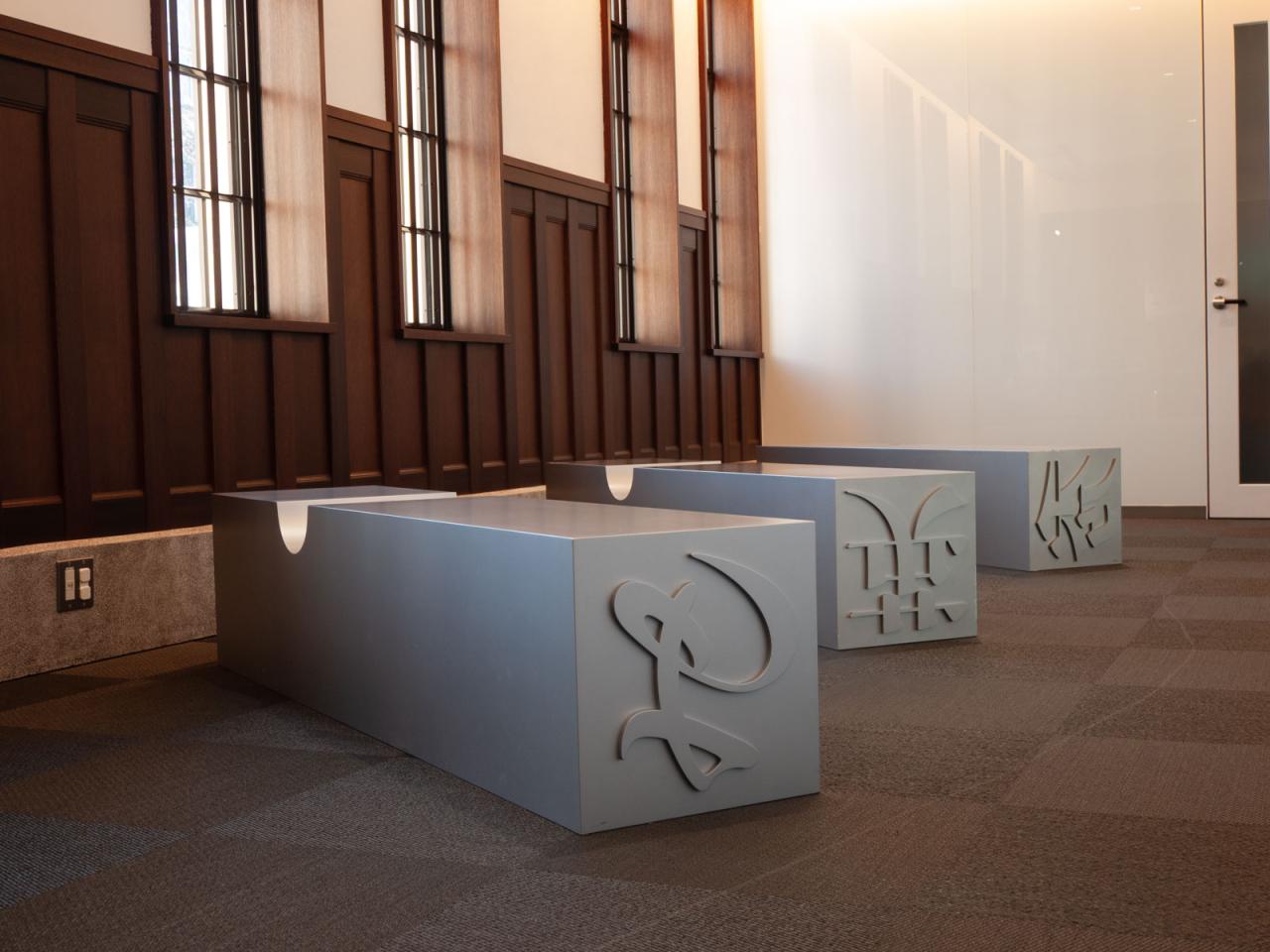 何と言っても気になるのはこの建物。こちらは1926年に建てられた工場の営業所棟を修復・復元したもの。空襲の激しかった新宿区で、焼失をまぬがれたこの建造物自体が貴重だということで、DNP市谷地区再開発計画の一環として創建当時の姿に戻して活用することにしたそうです。新しく建て直すのではなく、修復・復元する。個人的に歴史のある建造物に惹かれる身としては、このような話はとても嬉しくなります。