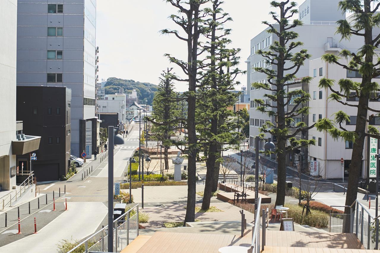 お昼ごはんは〈喫茶レストラン 丘〉へ。〈一隆堂喫茶室〉から中央緑道と呼ばれる散歩道を通って約10分ほどの位置にある。中央緑道は徳川家康を支えた徳川四天王の像が立つ、さりげなく歴史を感じられるスポット。木を基調としたテラスのほか、テーブルやイスがあり、ちょっとした休憩スペースとしても活用できる。