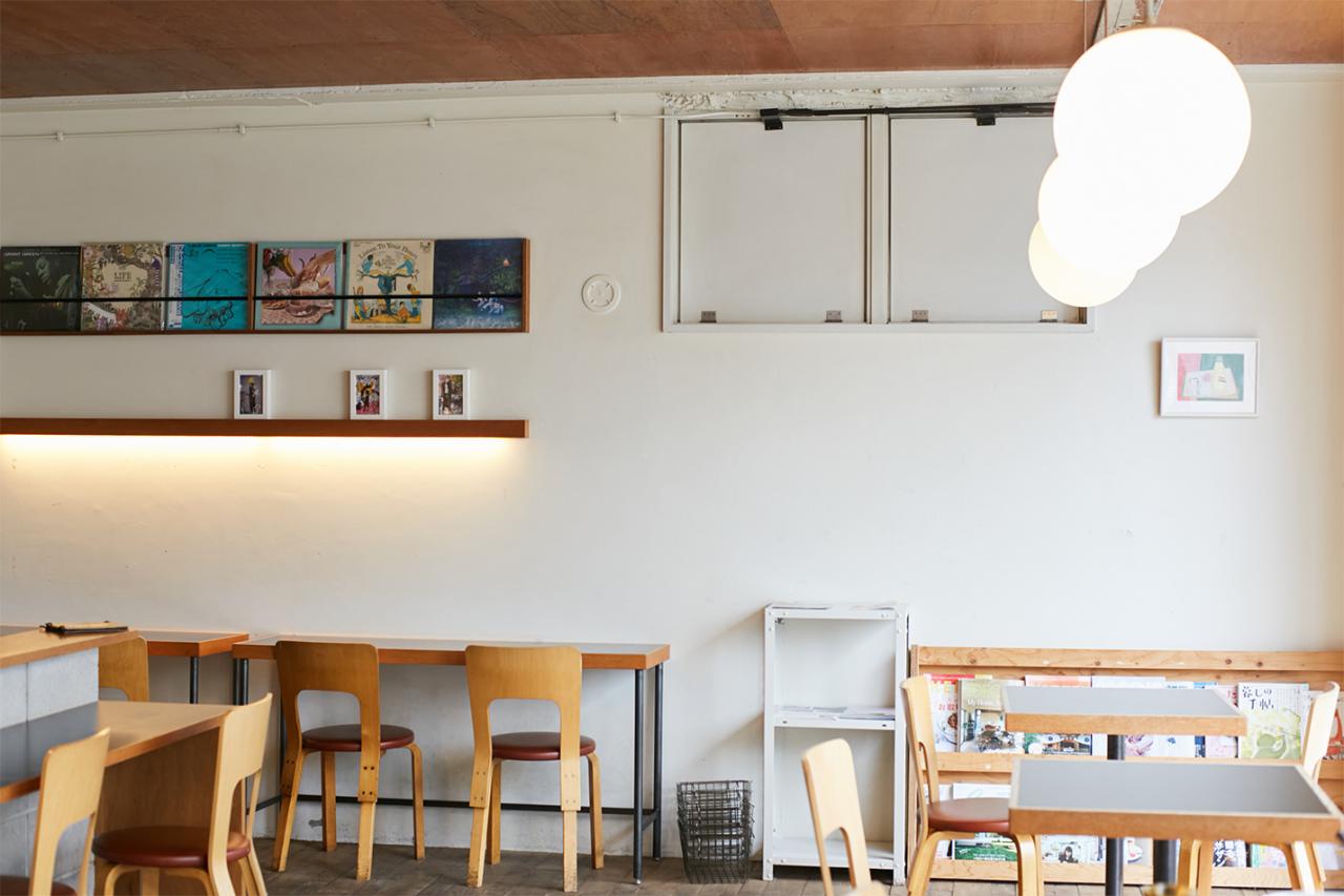 マスターの藤原さんによると、このカラフルな内装は「あいちトリエンナーレ」の映像で店内の装飾を行うお店を見たことがきっかけだという。内装は手作業で行われていて、「丘」のロゴステッカーもすべて手づくり。もともと黒一色だったステッカーを、お客さんの要望でカラフルな用紙に変えたところ学生を中心に流行したのだとか。