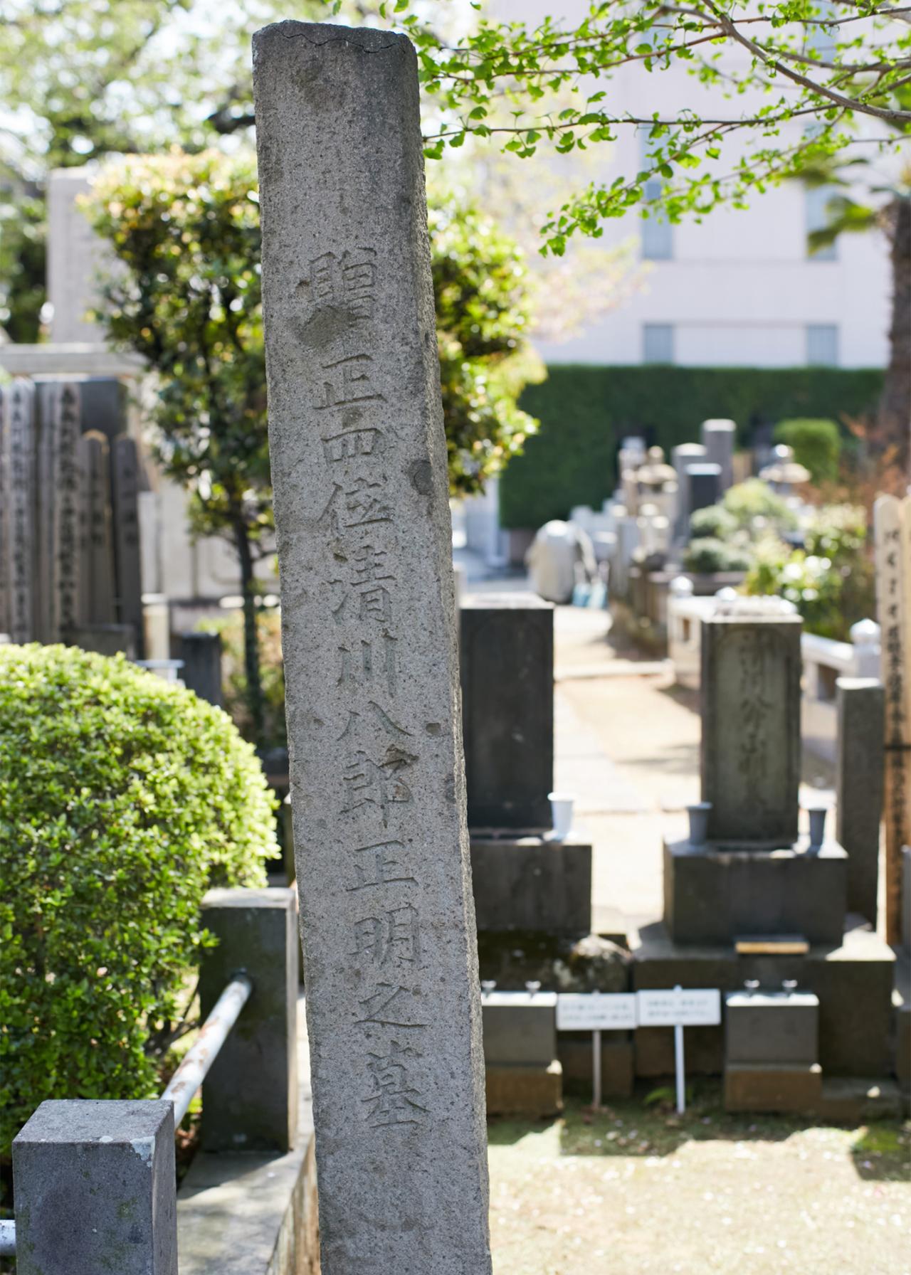 結成会から4日後の2月8日、浪士隊の一行は京都へと旅立っていった。志をともにし、気概をみなぎらせた若者たちがここから大きな時代の渦に巻き込まれていったのだと思うと、なんとも感慨深い。〈傳通院〉には新選組の礎を築いた清河八郎のお墓がある。清河八郎と親交の深かった山岡鉄舟が、処静院の琳瑞(りんずい)住職に頼み込み、この地に埋葬したという。琳瑞住職は清河八郎と同じ山形の出身だったそう。敷地内には琳瑞住職のお墓もあるので、一緒にお参りしておきたい。