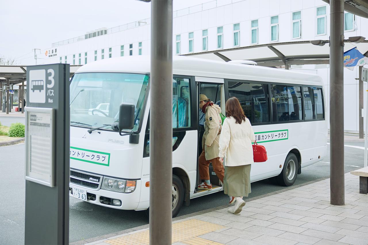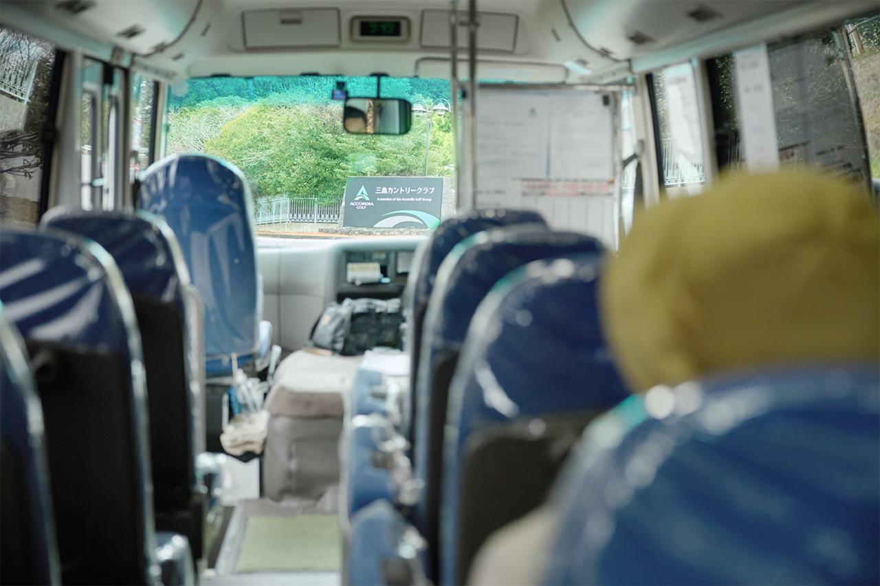 車窓からの景色を眺めたり、会話を楽しんだりしているうちに、あっという間に三島駅へ。ここからはバスでゴルフ場へ向かう。