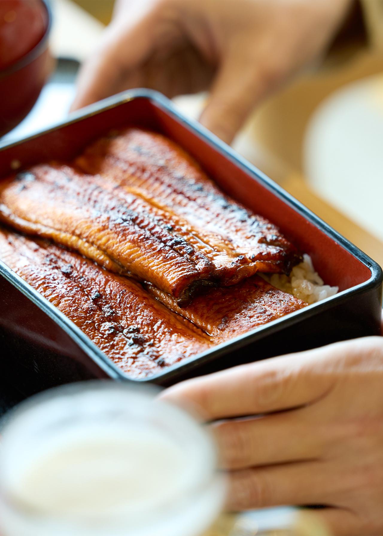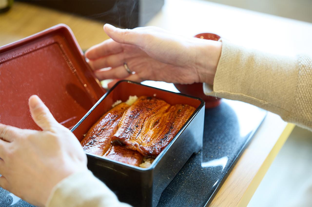 今回は数あるメニューの中から、国産鰻のひつまぶし膳と鰻重を頼んだ。じつは三島は鰻が名物で、市外にもたくさんの鰻専門店がある。産地ではないのに鰻が有名なのは、三島市内に流れる富士山の伏流水を使う独自の手法から。鰻を富士山の伏流水に打たせることで、臭みがなく、鰻本来の味が引き出されるそうだ。ふっくらと焼き上げられた鰻は、ふわふわの食感でありながら身がしっかりとしていて、思わず笑顔になるおいしさ。自家製のタレは濃厚で、わさびにもよく合う。ひつまぶしや鰻重を食べに来るだけでも価値があると思わせる極上の味わいだった。季節によりメニューが変わるそうなので、また次に訪れるときの楽しみができた。
