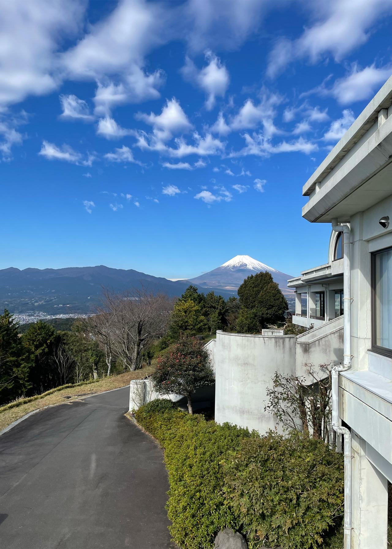今回訪れるのは、三島駅からバスで約15分の場所にある〈三島カントリークラブ〉。市街地からそこまで離れていない場所にありながら、富士山と駿河湾の眺望が楽しめる贅沢なゴルフ場。2025年2月にリニューアルオープンされて、より快適な空間に生まれ変わったというから楽しみだ。